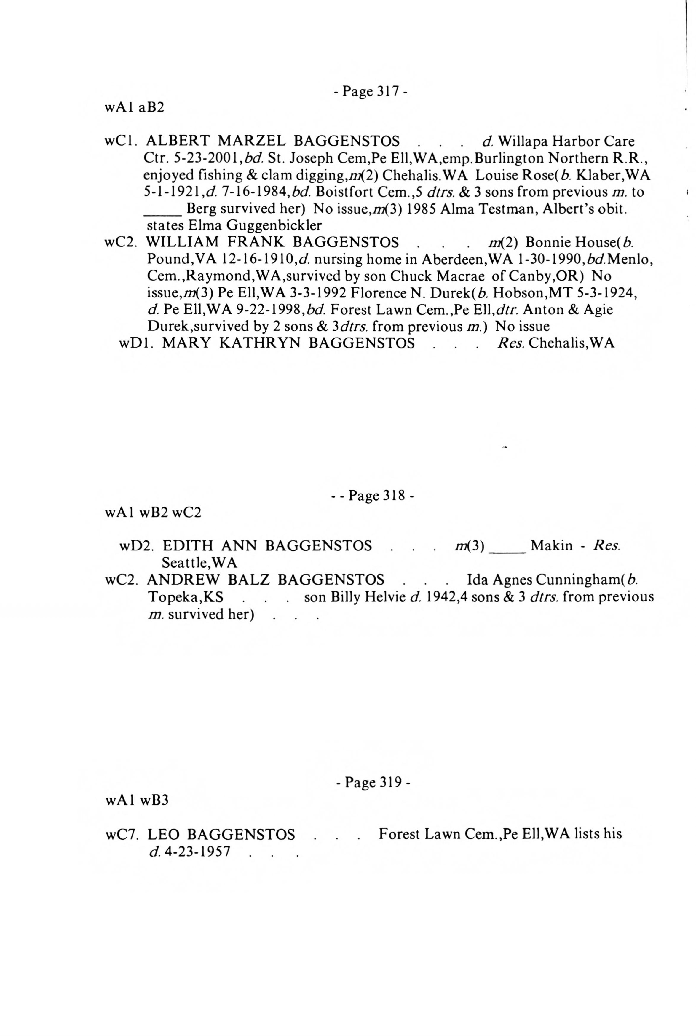 | WILLIAM FRANK BAGGENSTOS | 07-10-1917 | Pe Ell,WA,farmer | |