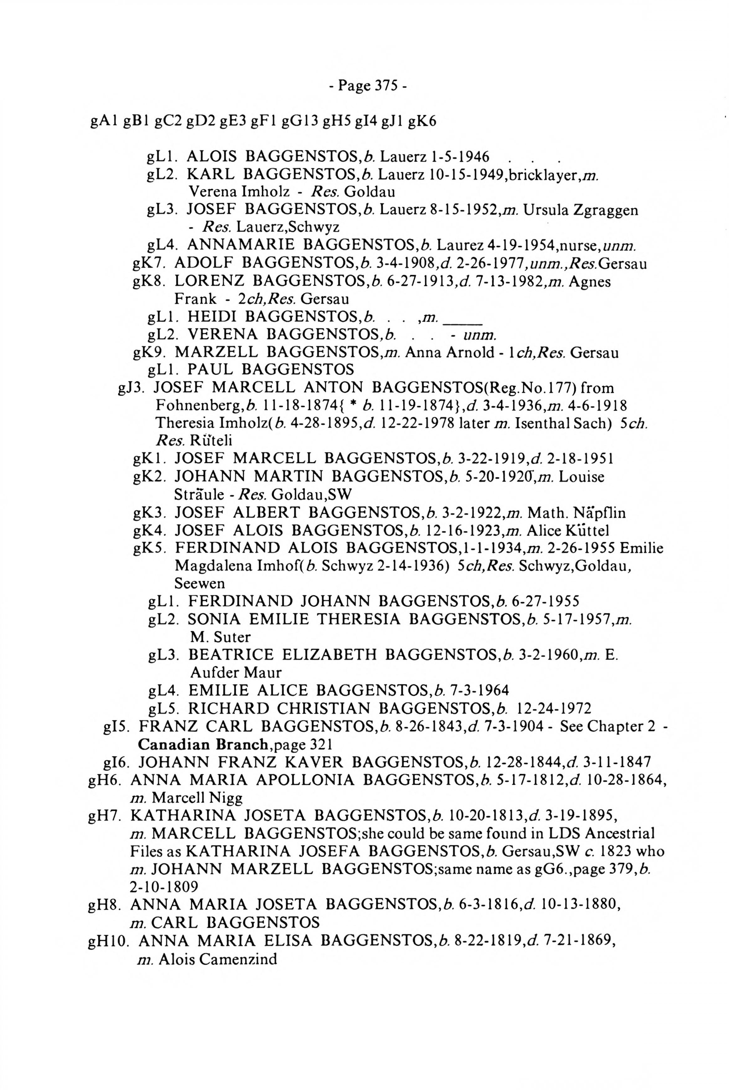 Backenstoss--Baggenstoss Family History - 1993 - Main Book - Page 375