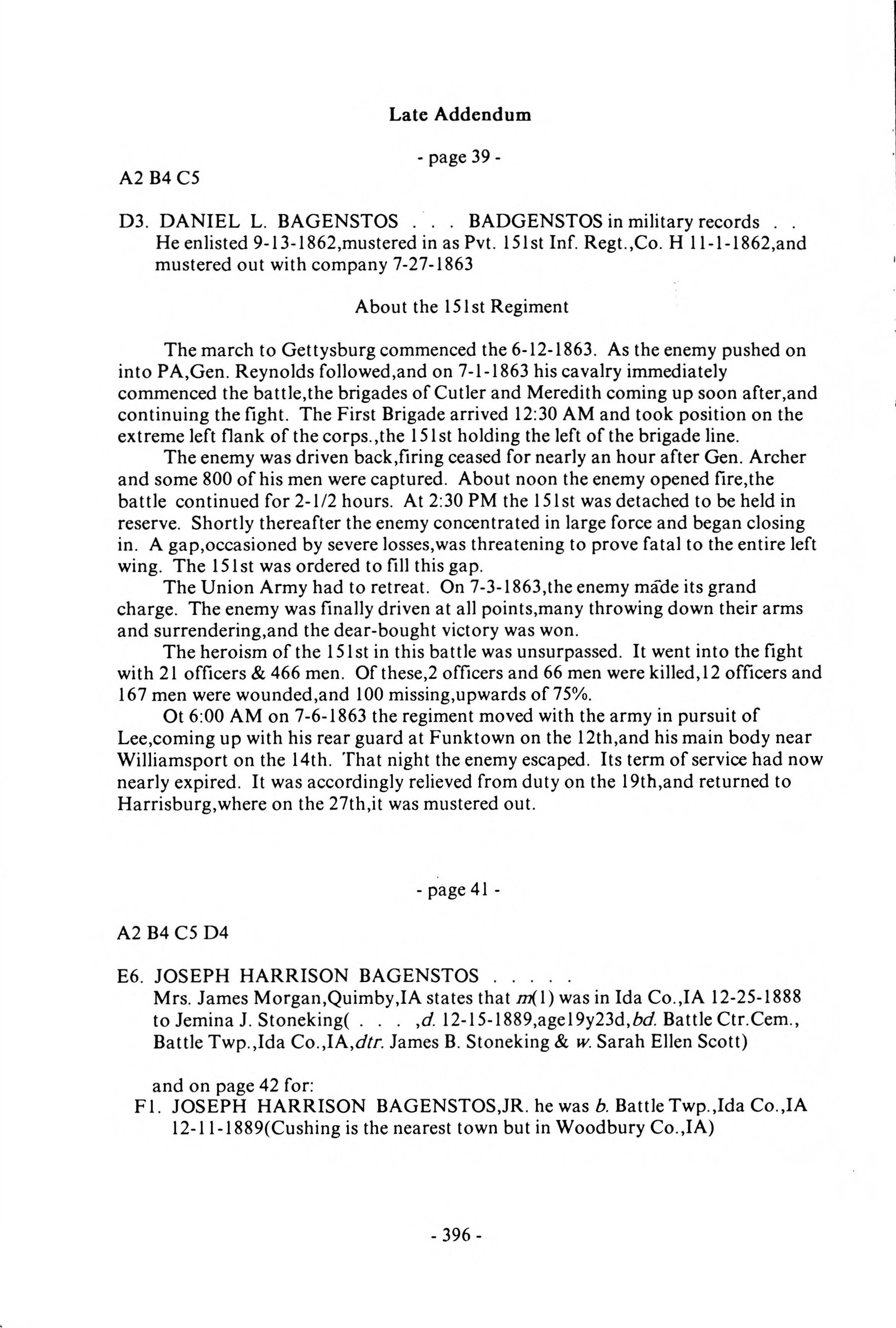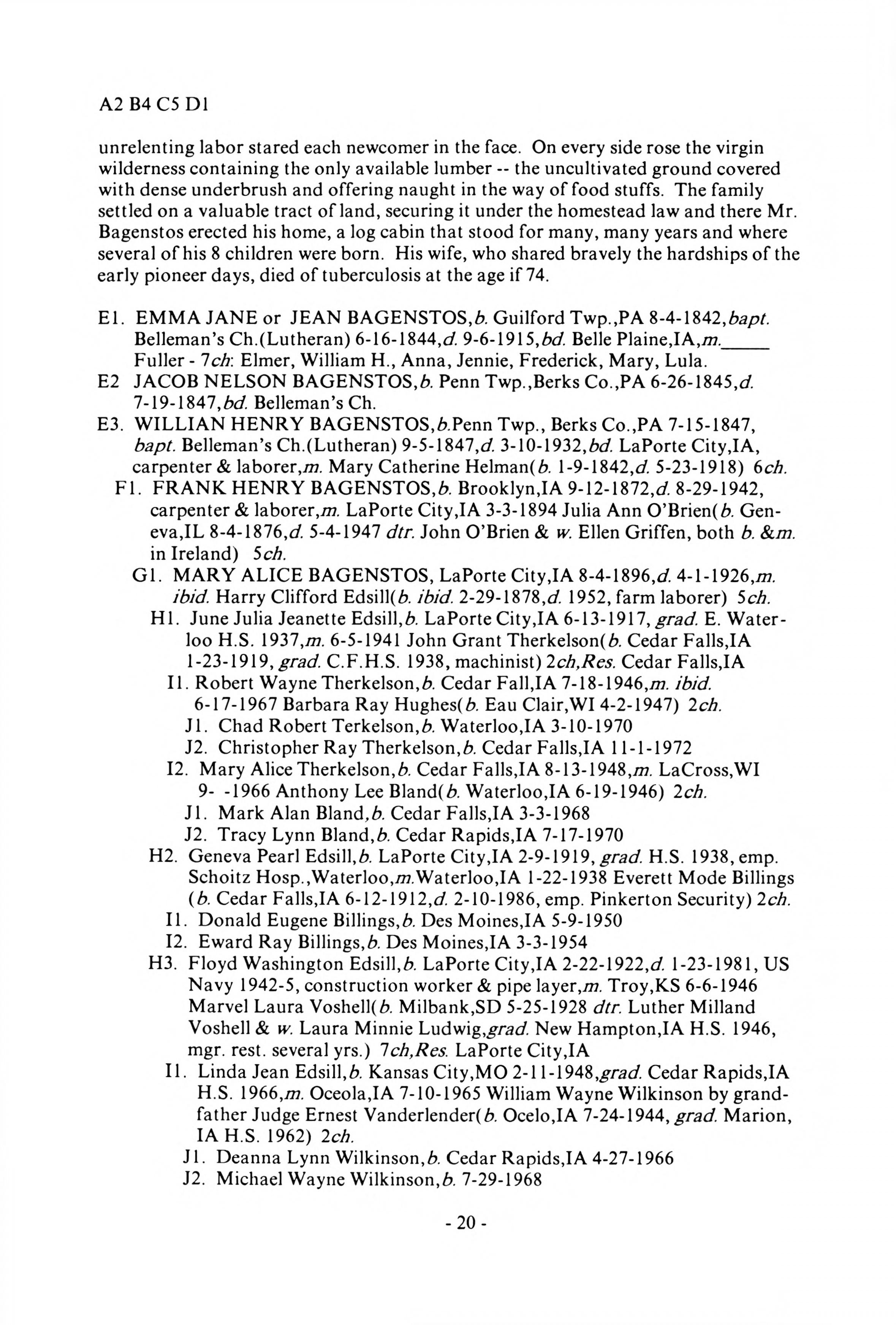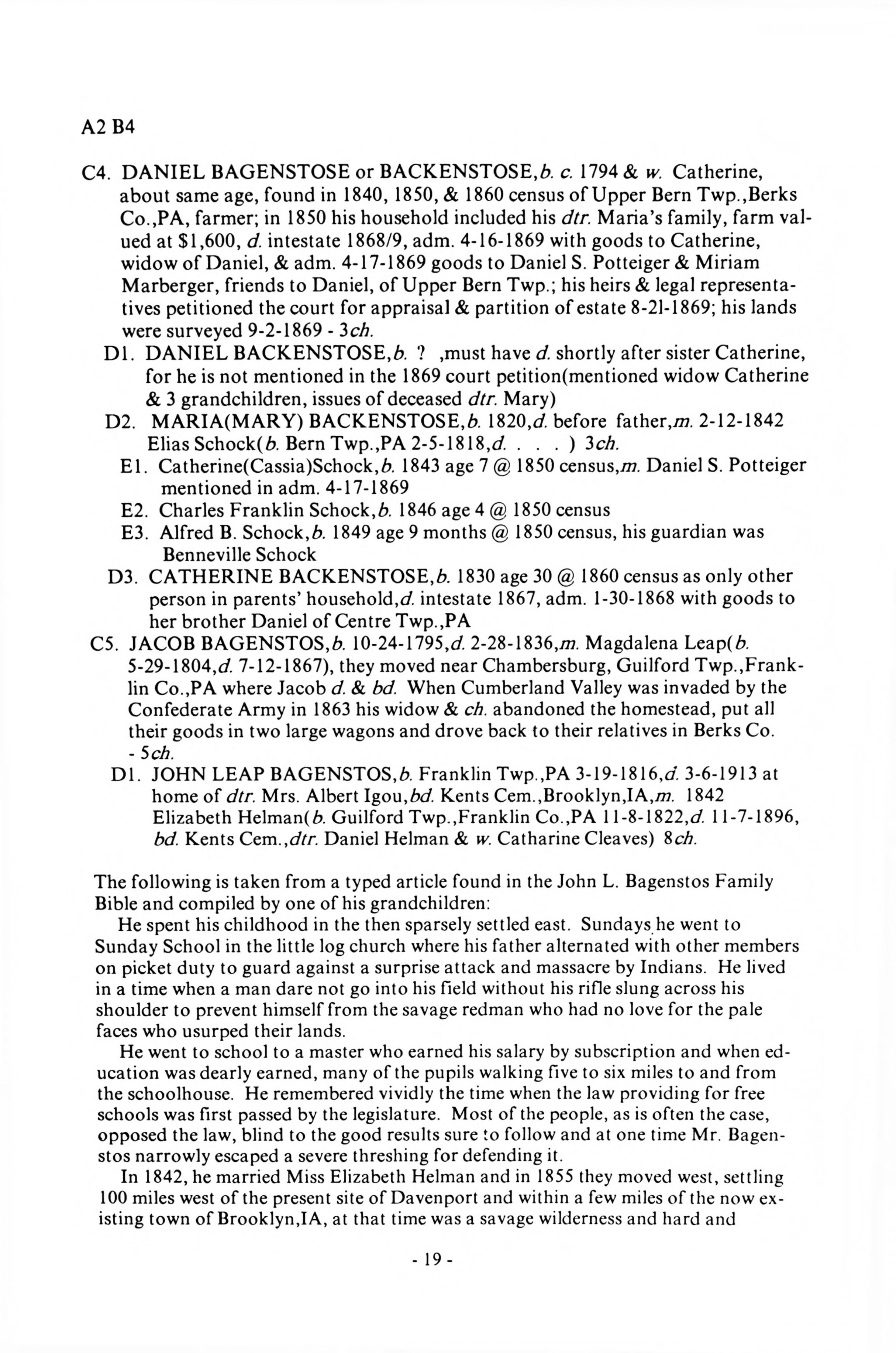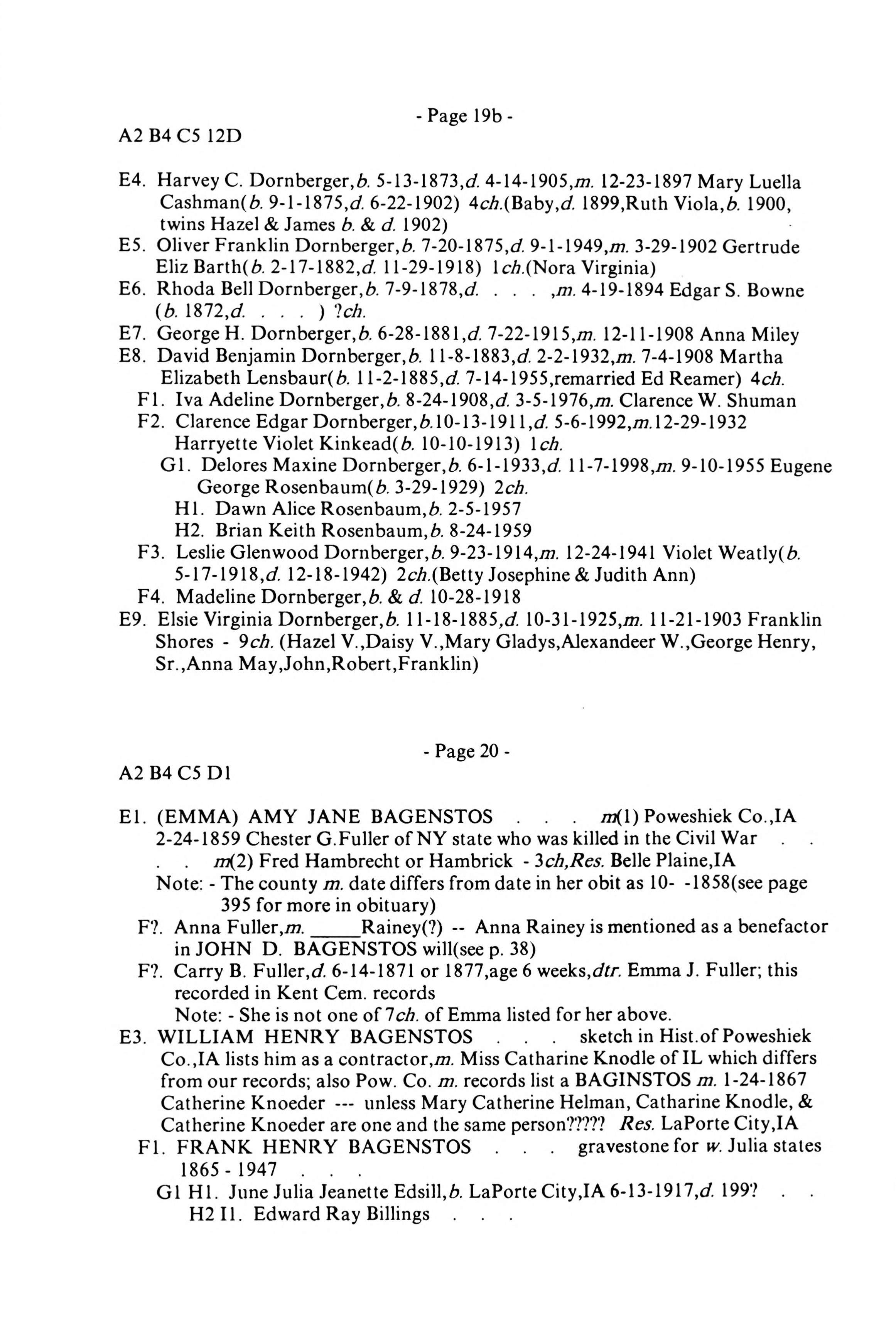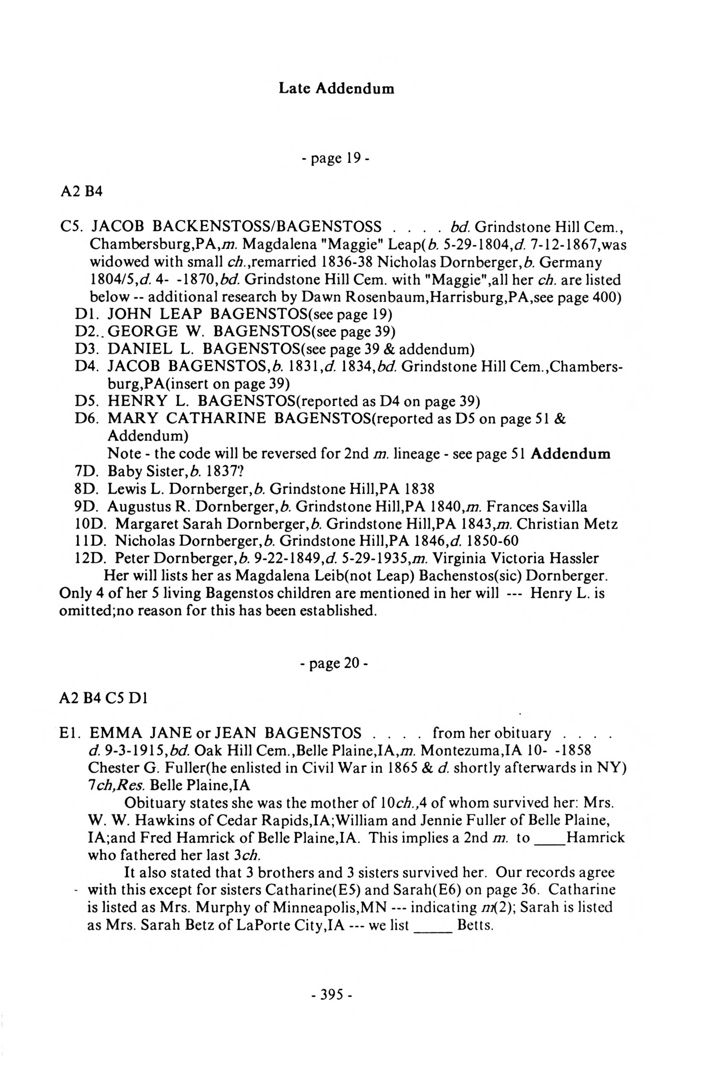 Backenstoss--Baggenstoss Family History - 1993 - Main Book, Late Addendum - Page 19