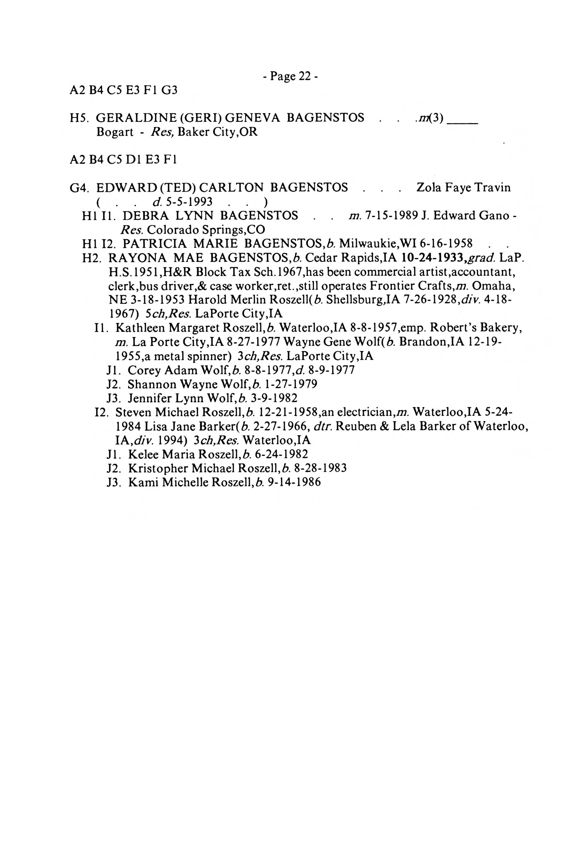 EDWARD (TED) CARLTON BAGENSTOS, . . . Zola Faye Travin |