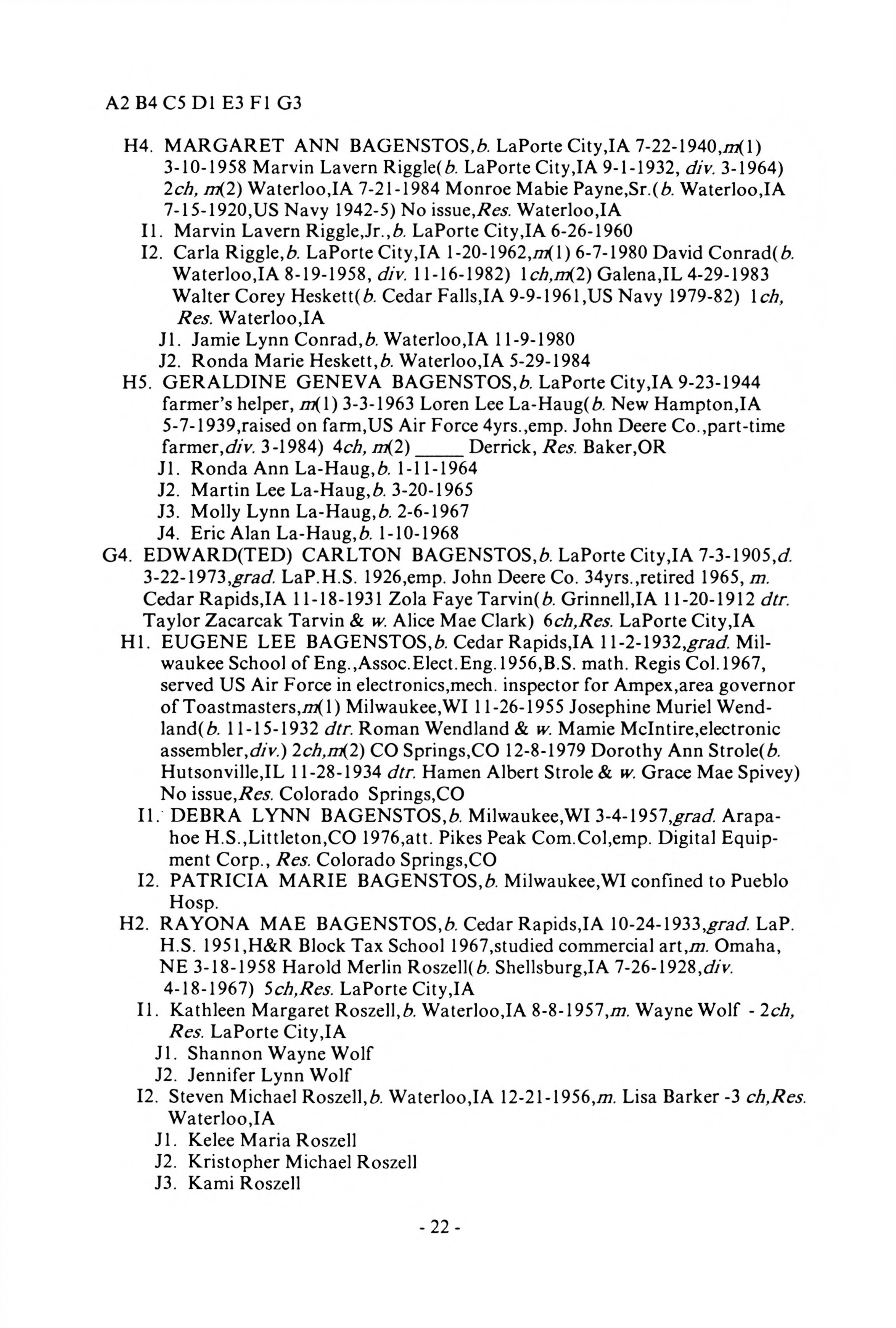 Backenstoss--Baggenstoss Family History - 1993 - Main Book - Page 22