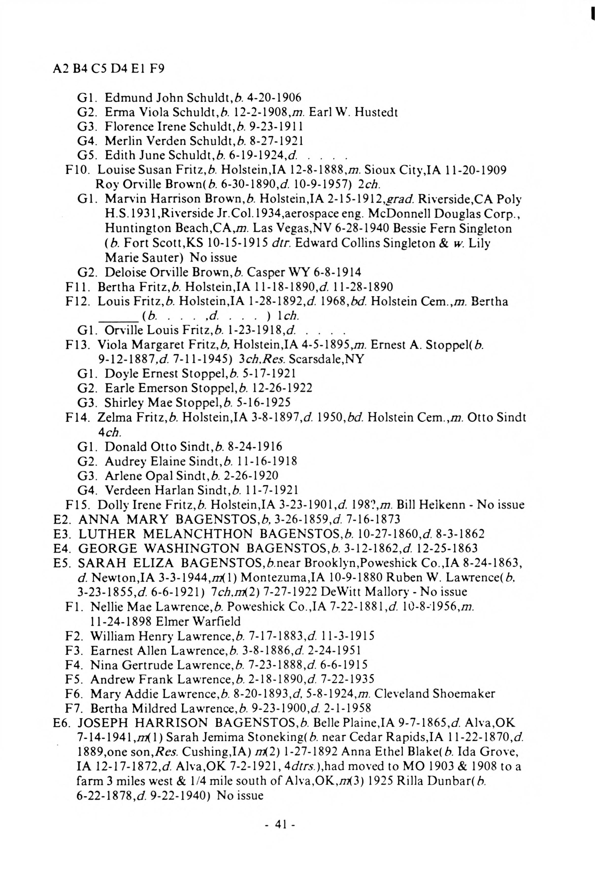 | URVAN BAGENSTOS | 1876 | IA,age 24 in 1900census,living with mother Lydia,age 67, in Ida Gove.IA |