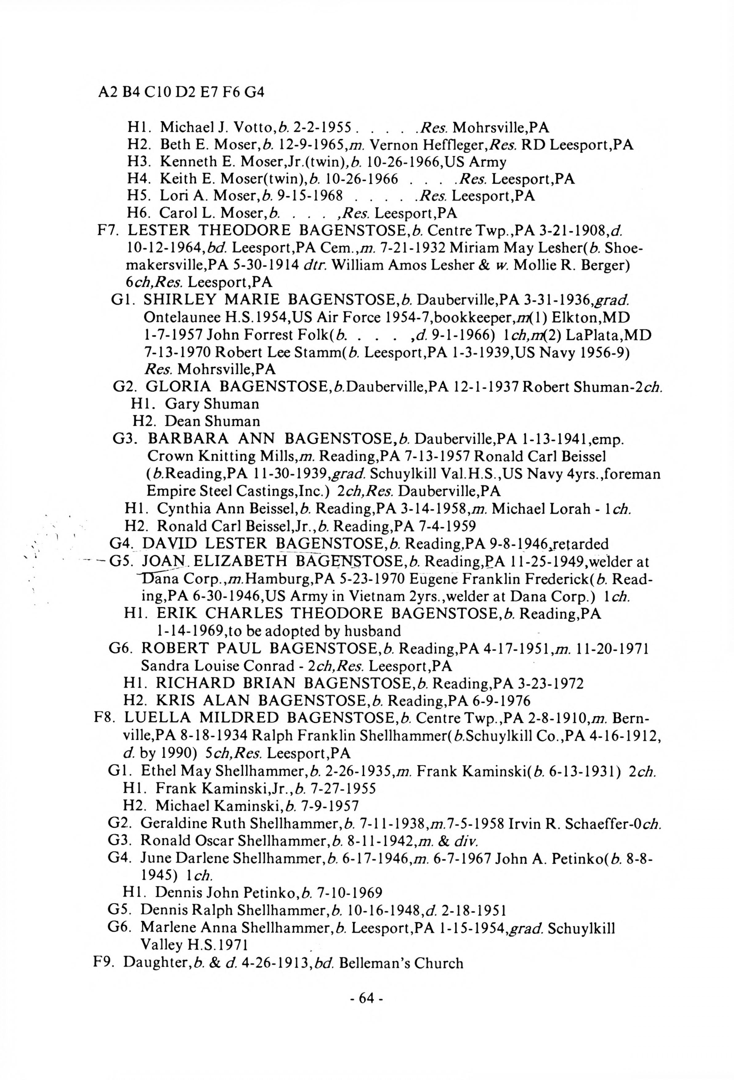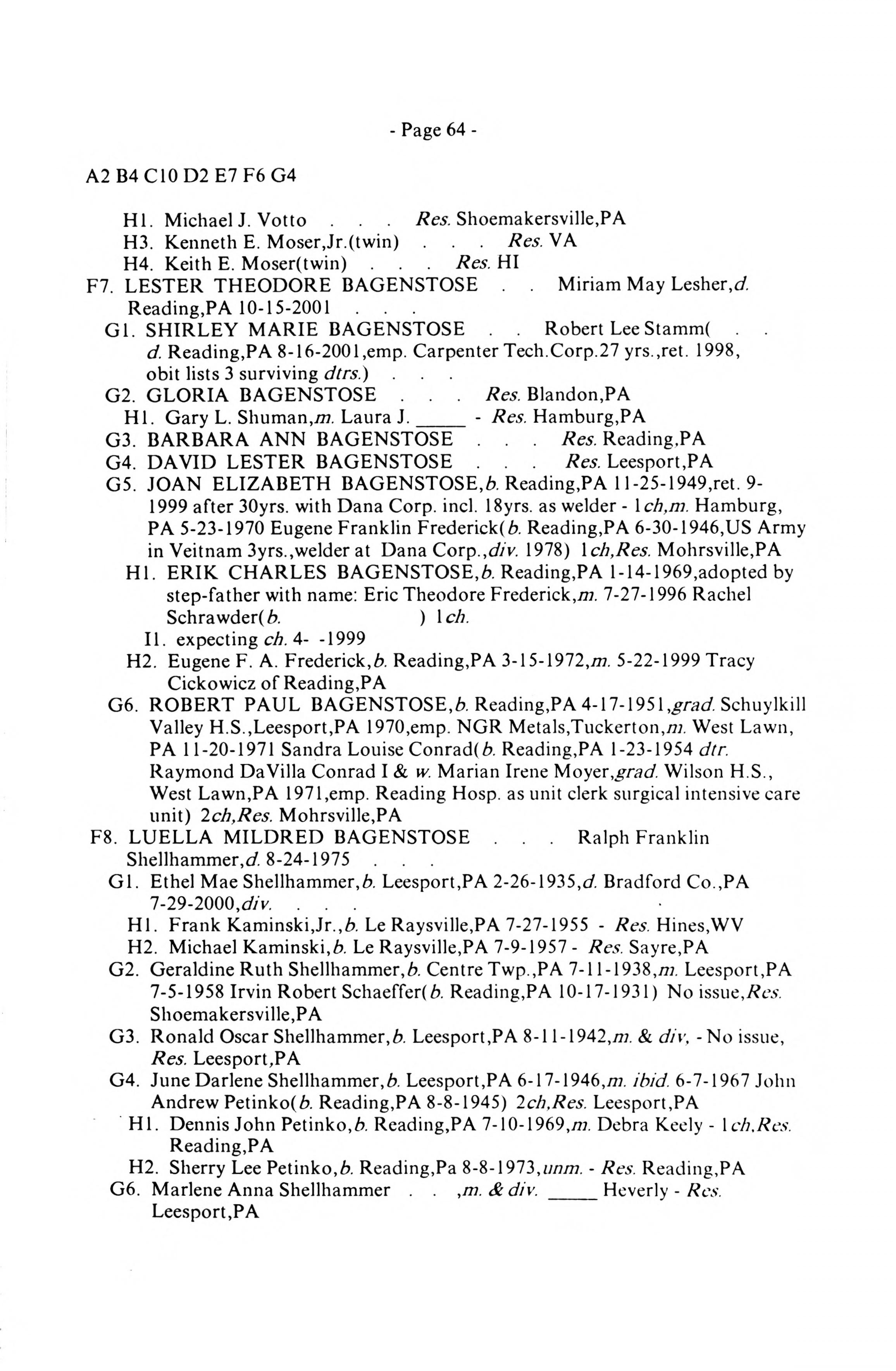 Addendum to Backenstoss--Baggenstoss Family History - 2002 - Page 64