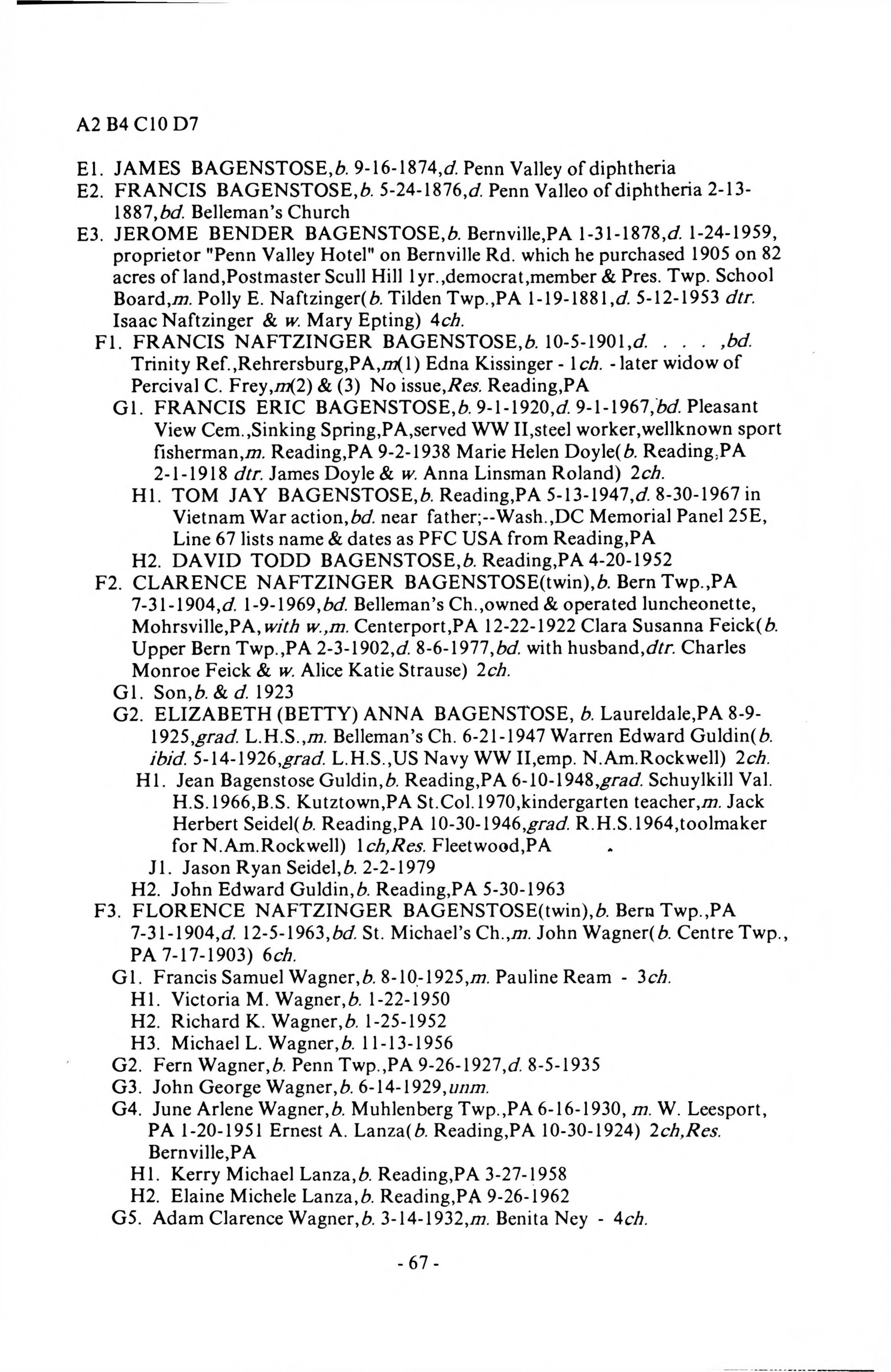 | Backenstoss--Baggenstoss Family History - 1993 - Main Book | Main1993 | ||