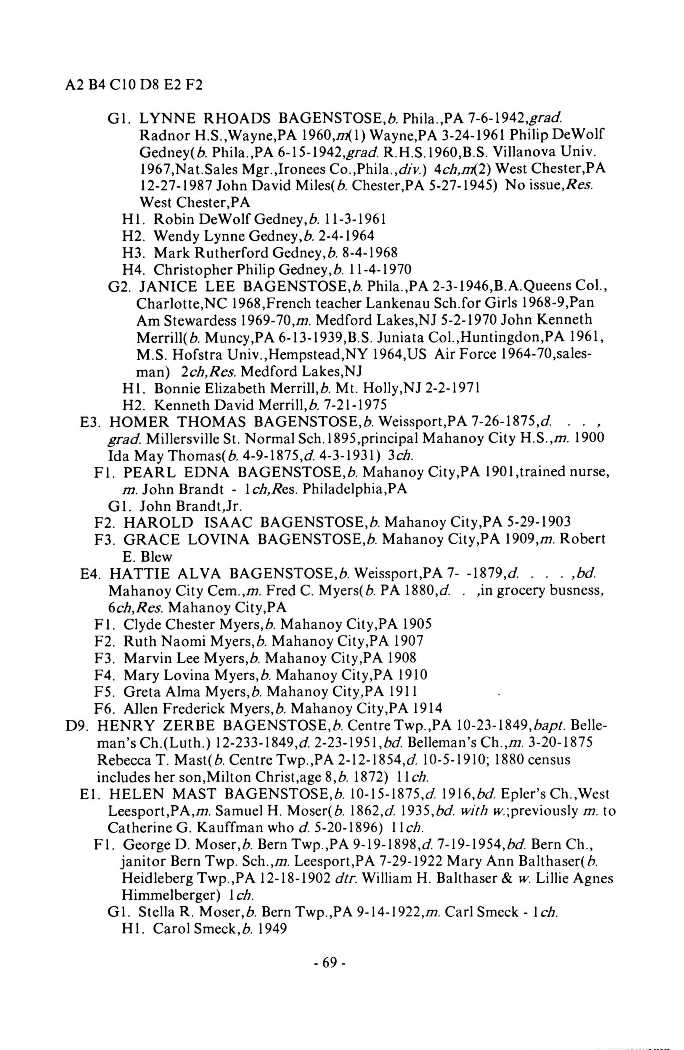 Backenstoss--Baggenstoss Family History - 1993 - Main Book - Page 68