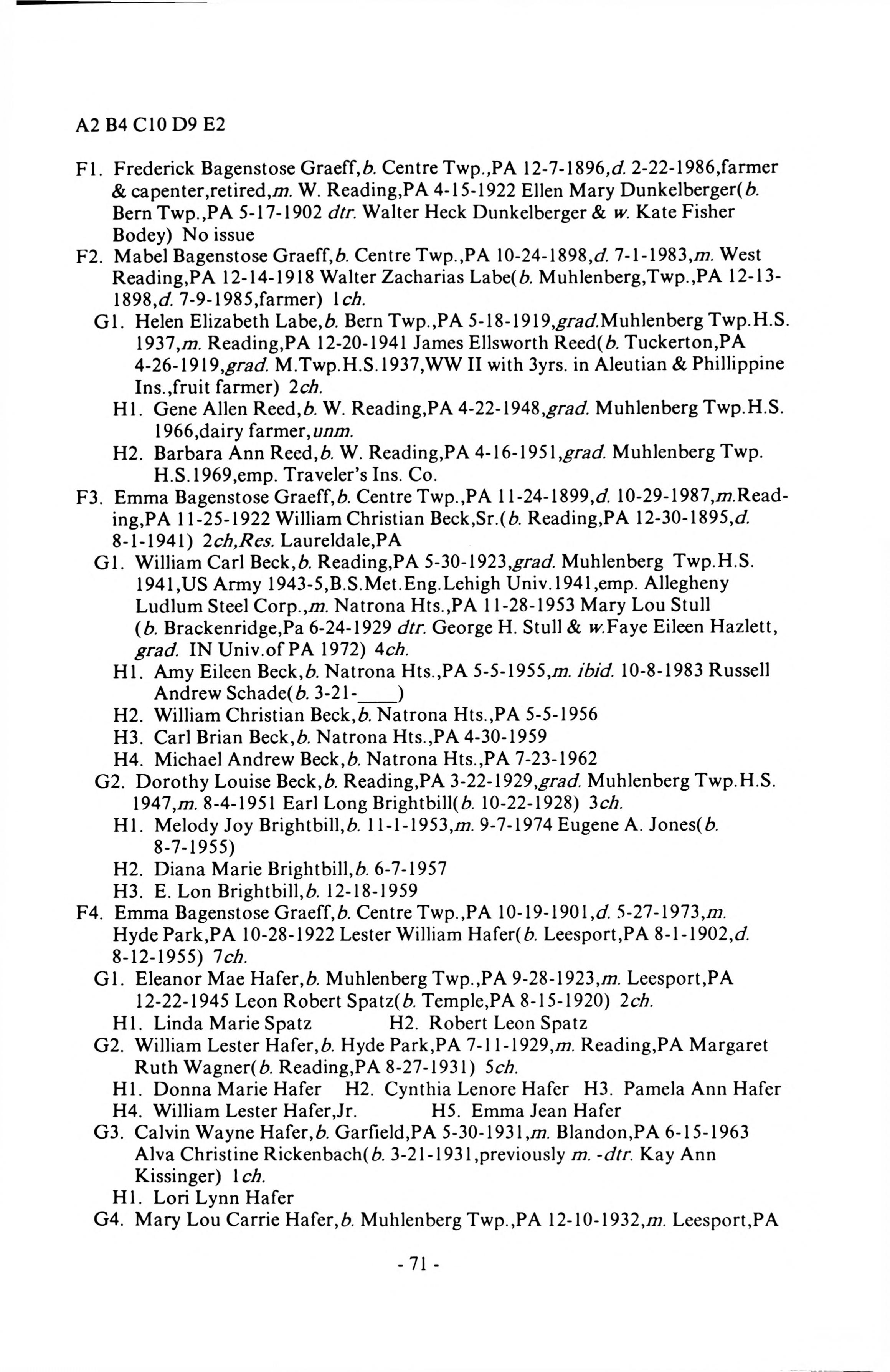 | Wayne Samuel Graeff | 01-18-1915 | 08-27-1991 | Bern Twp.,PA |