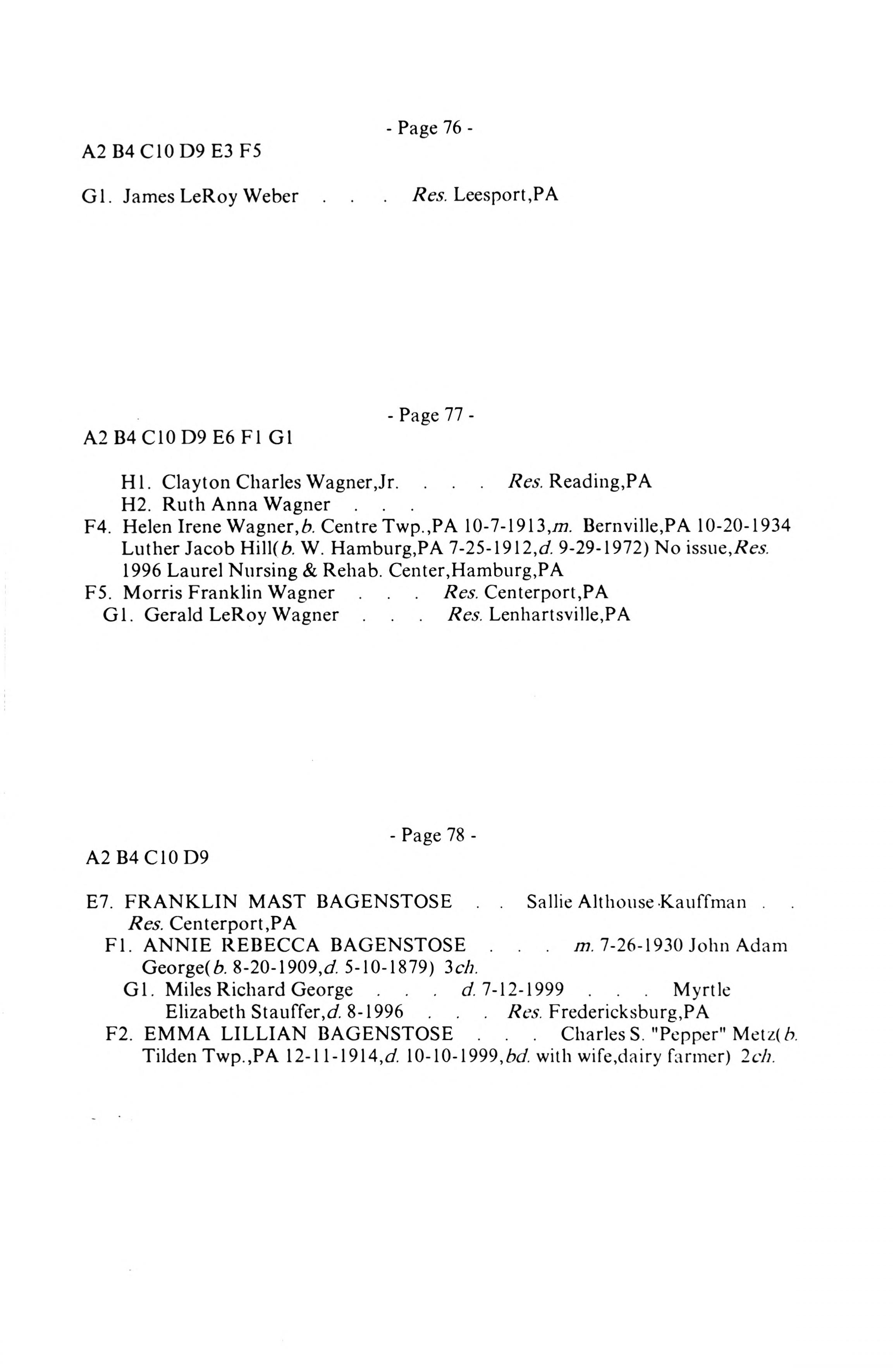 Addendum to Backenstoss--Baggenstoss Family History - 2002 - Page 78