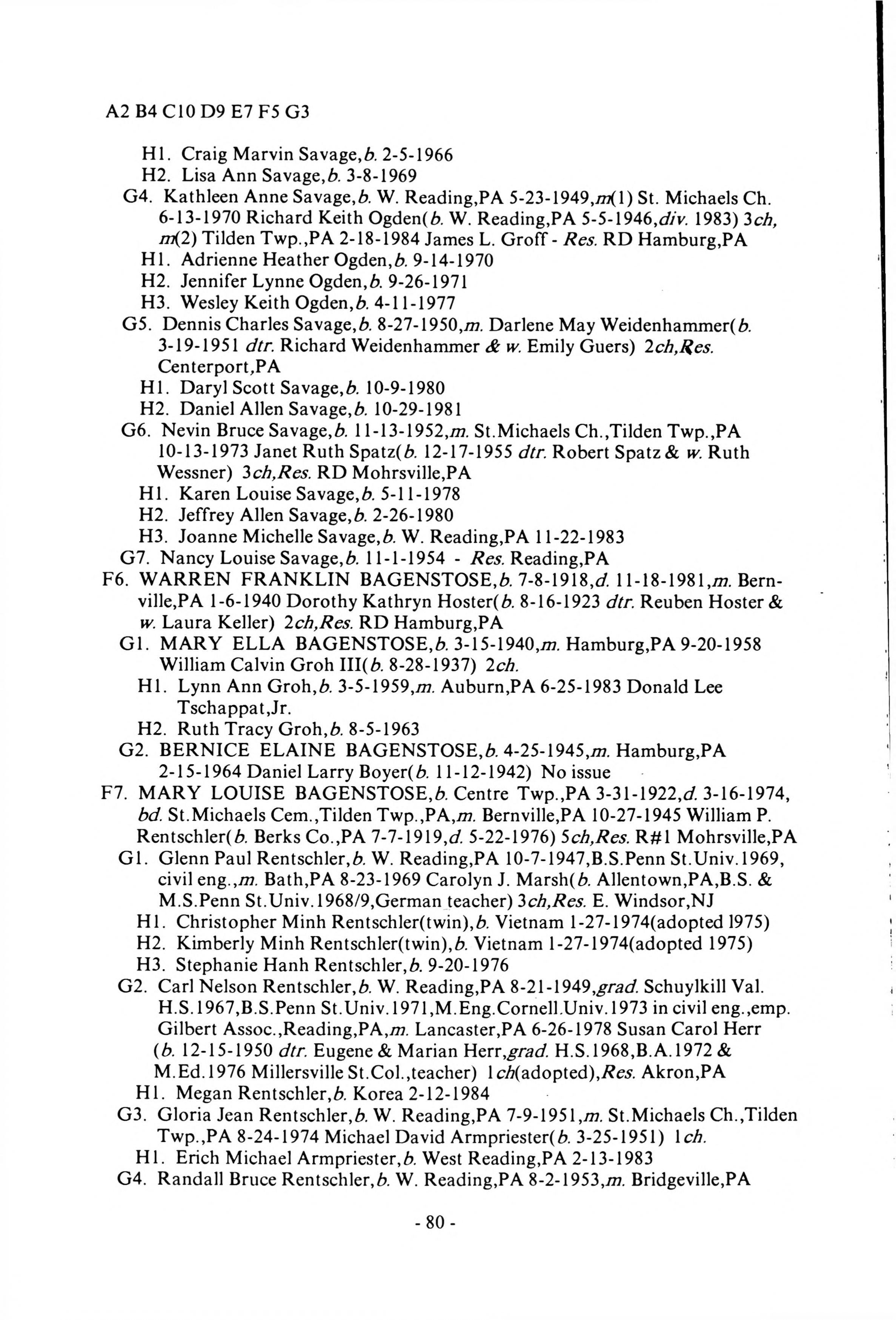| HOME | Bagenstose Family History |