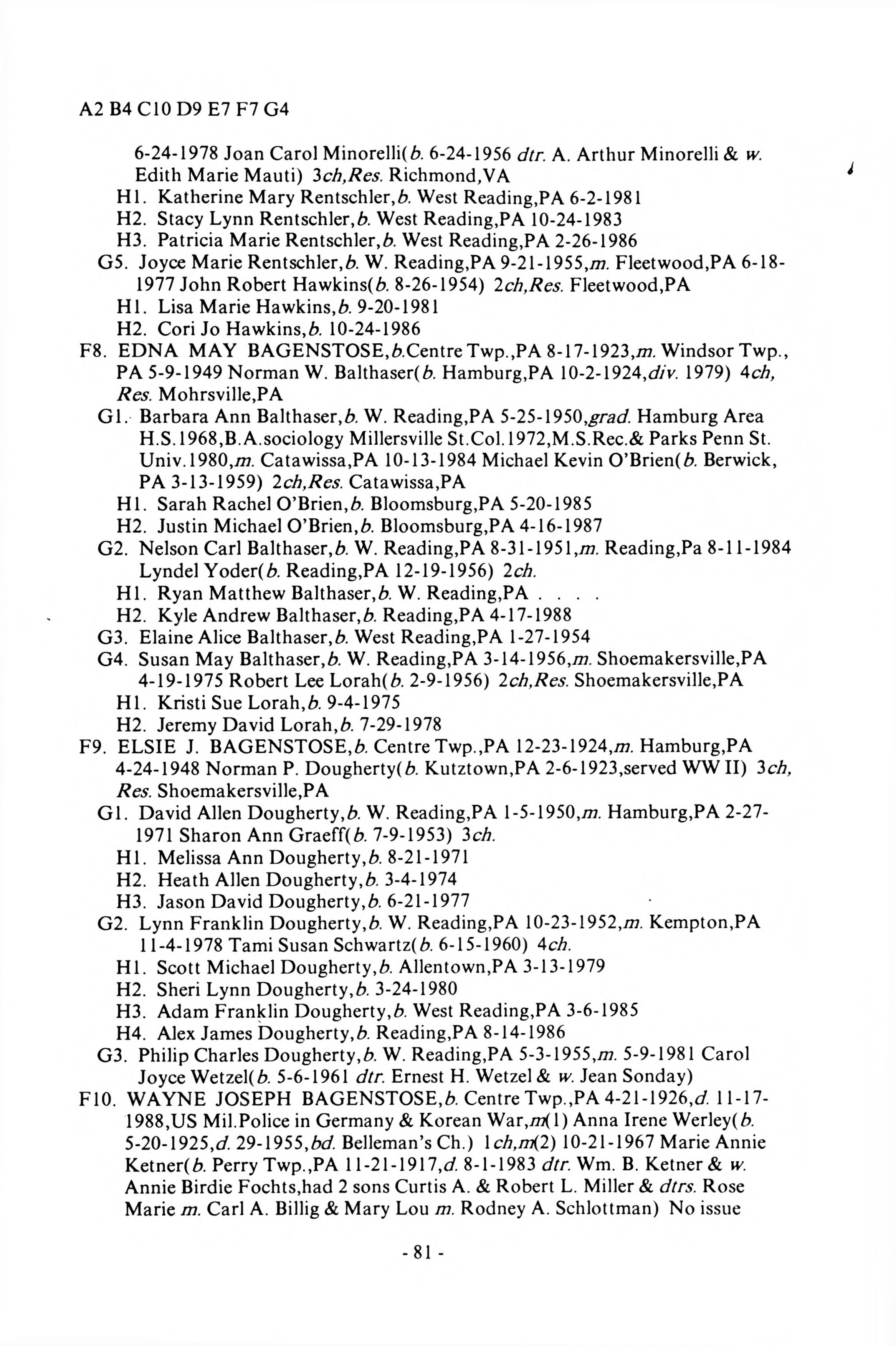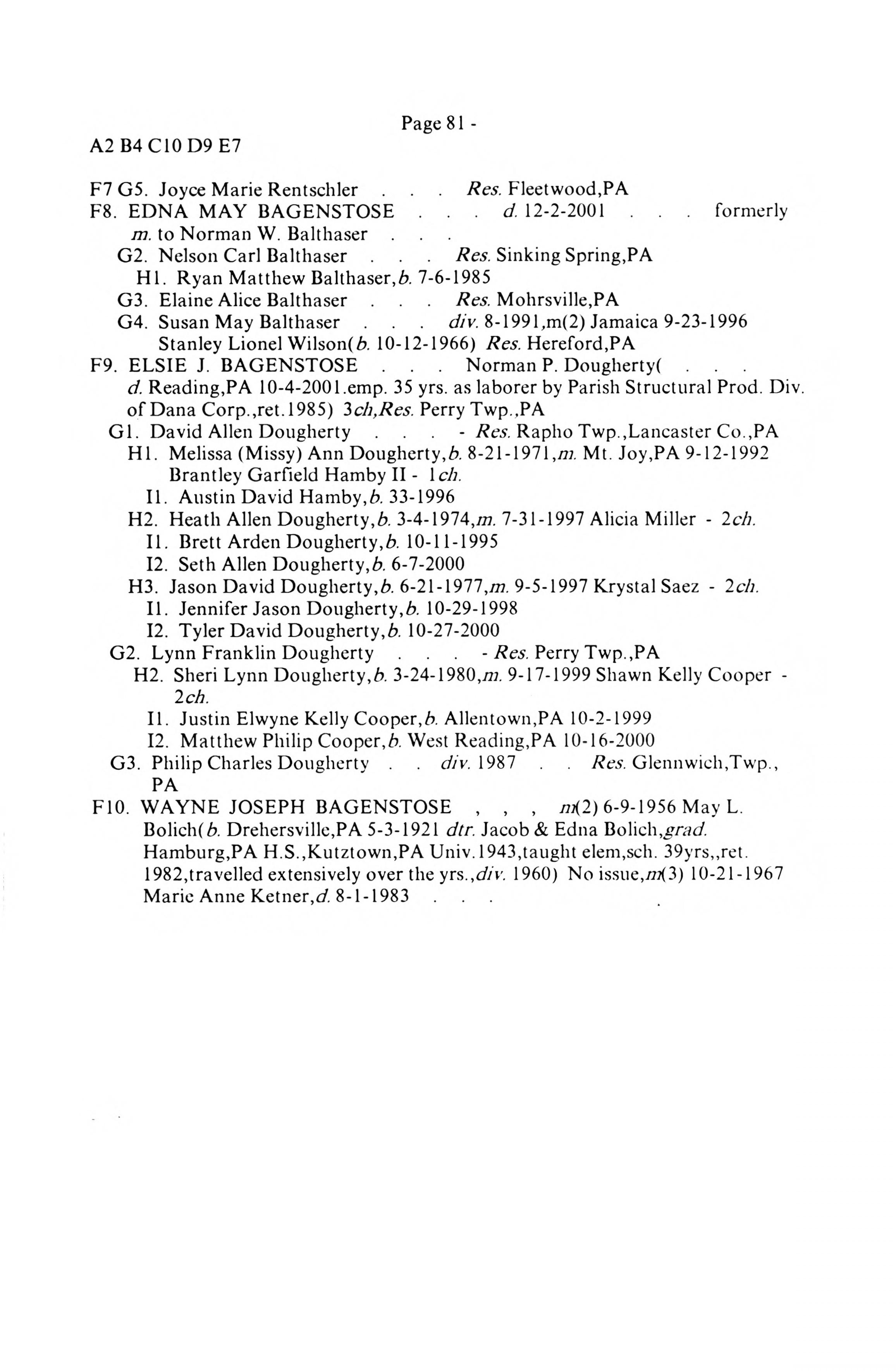 | Addendum to Backenstoss--Baggenstoss Family History - 2002 | Adde2002 | ||