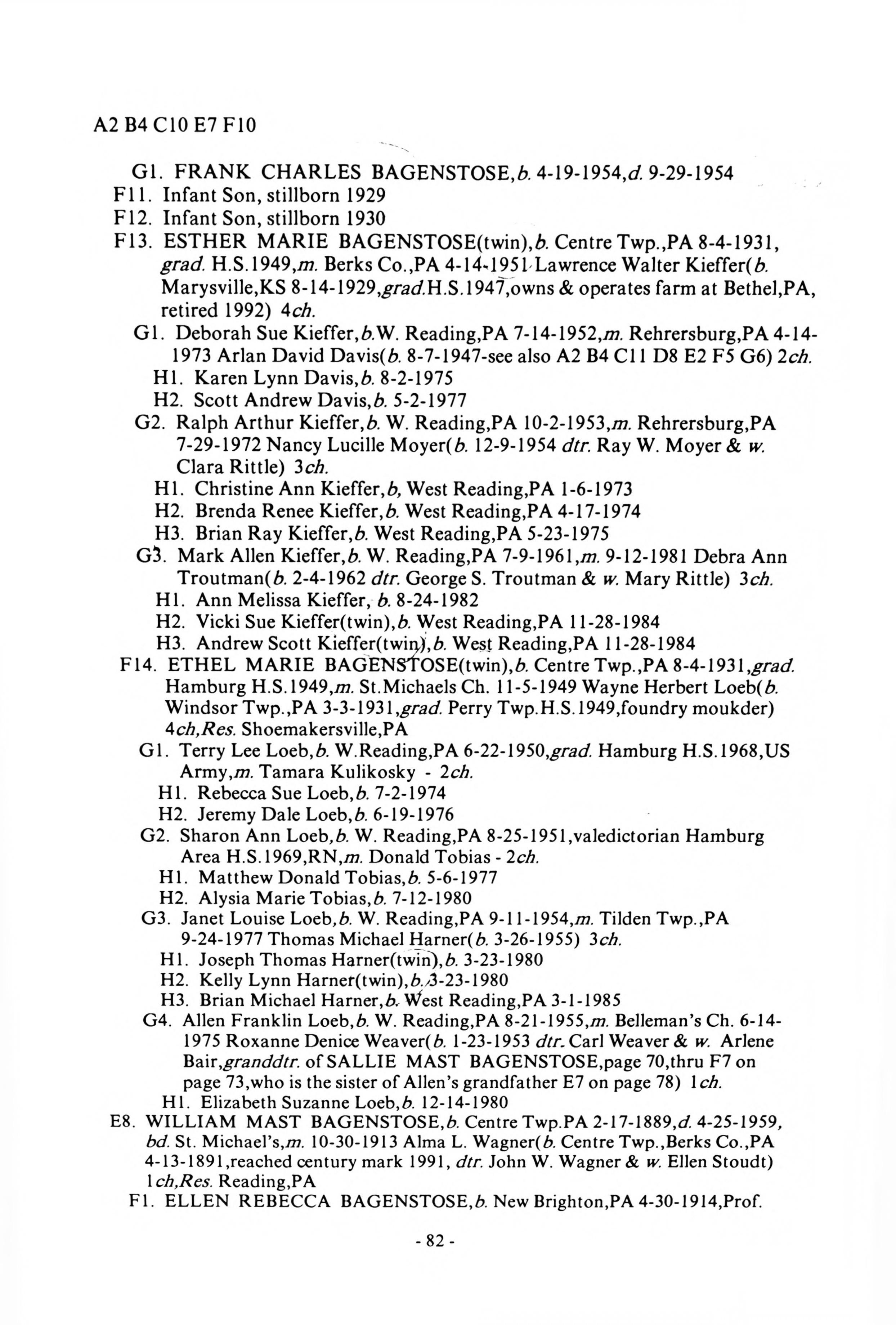 | Backenstoss--Baggenstoss Family History - 1993 - Main Book | Main1993 | ||