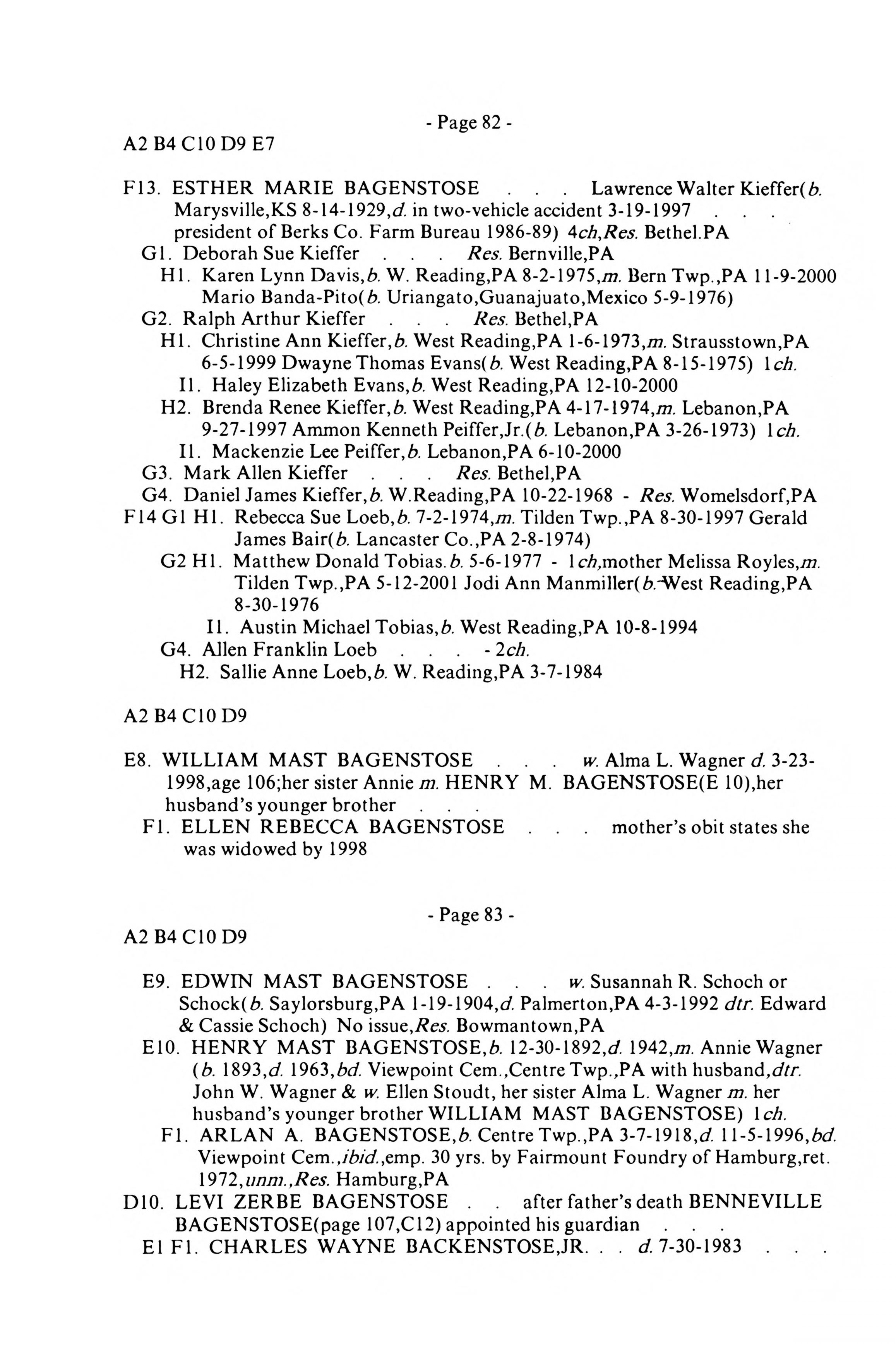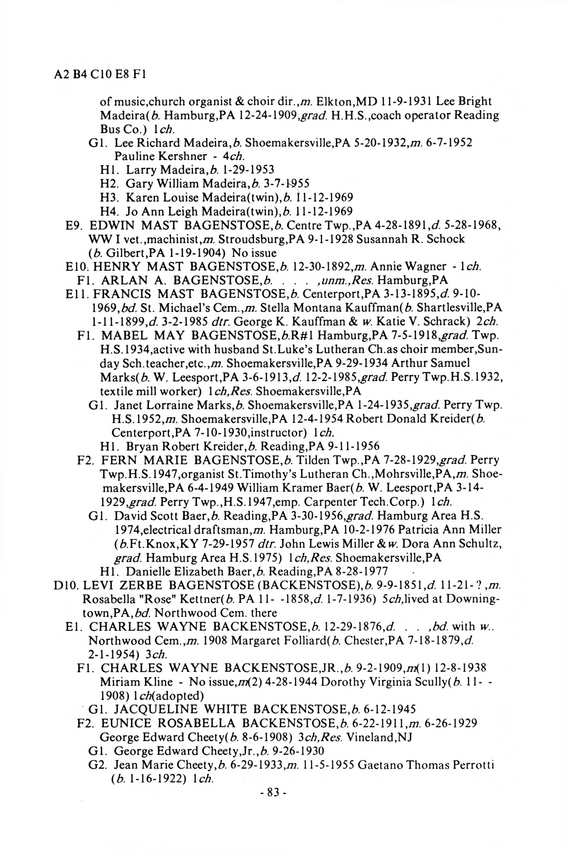 Addendum to Backenstoss--Baggenstoss Family History - 2002 - Page 83