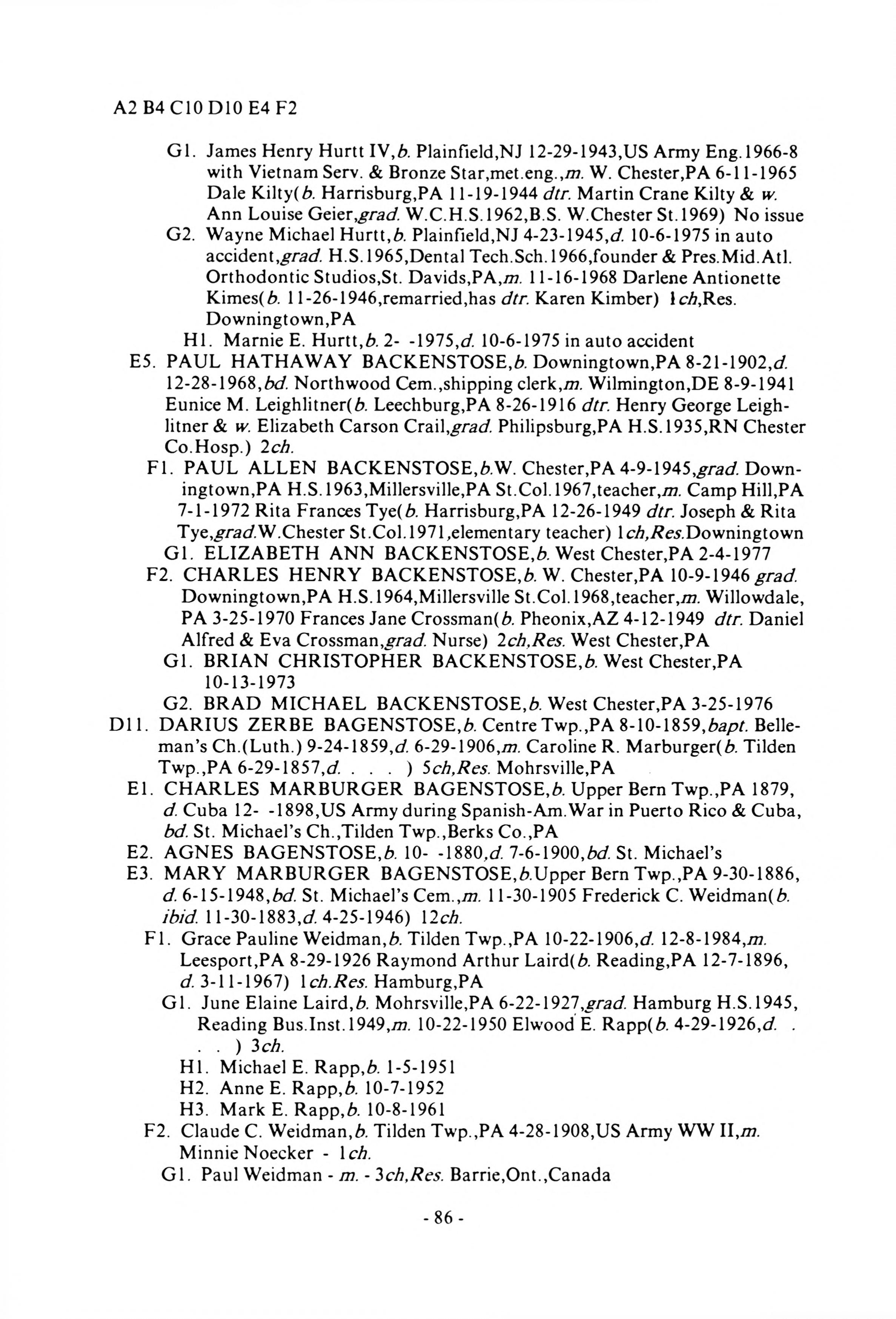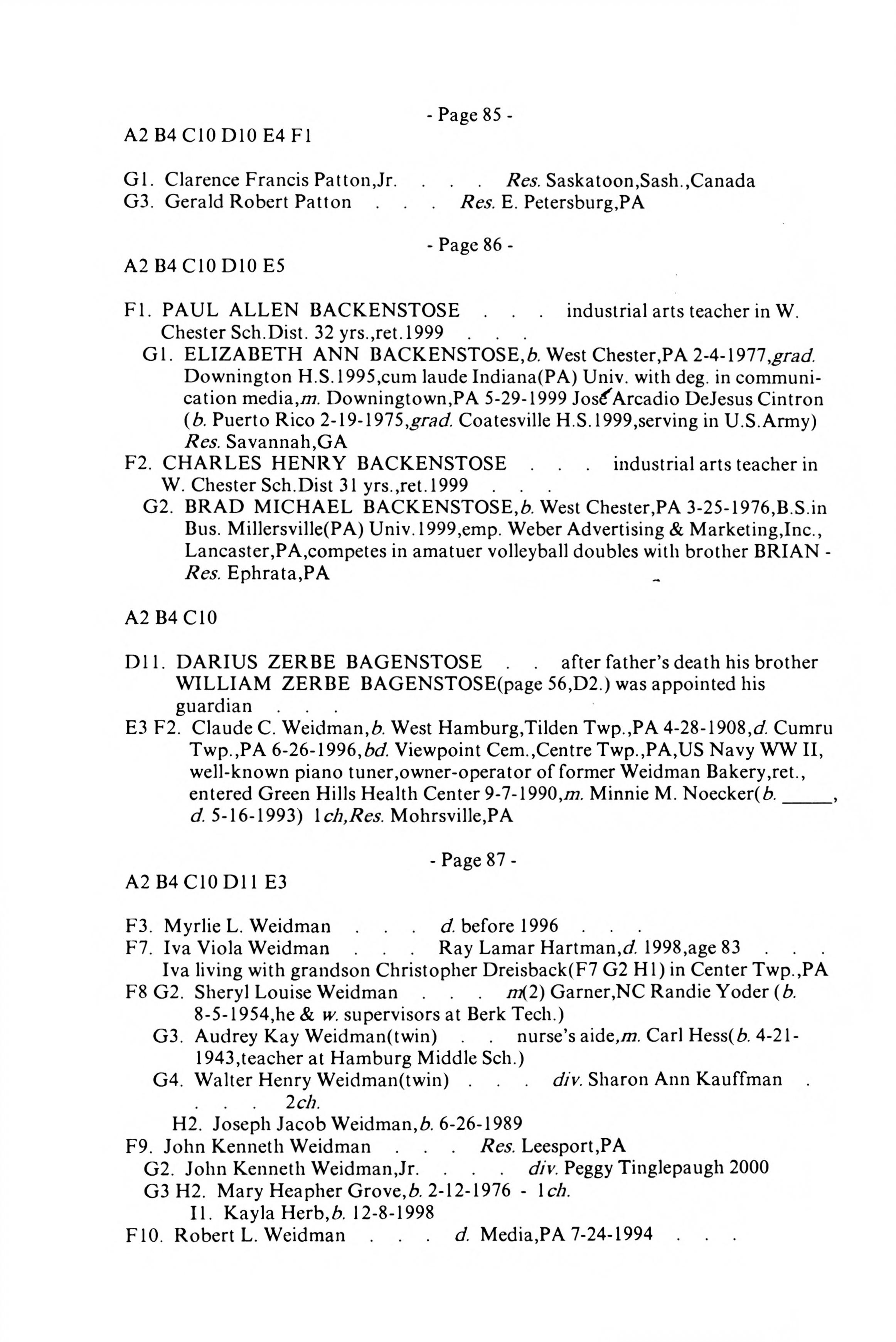Addendum to Backenstoss--Baggenstoss Family History - 2002 - Page 86