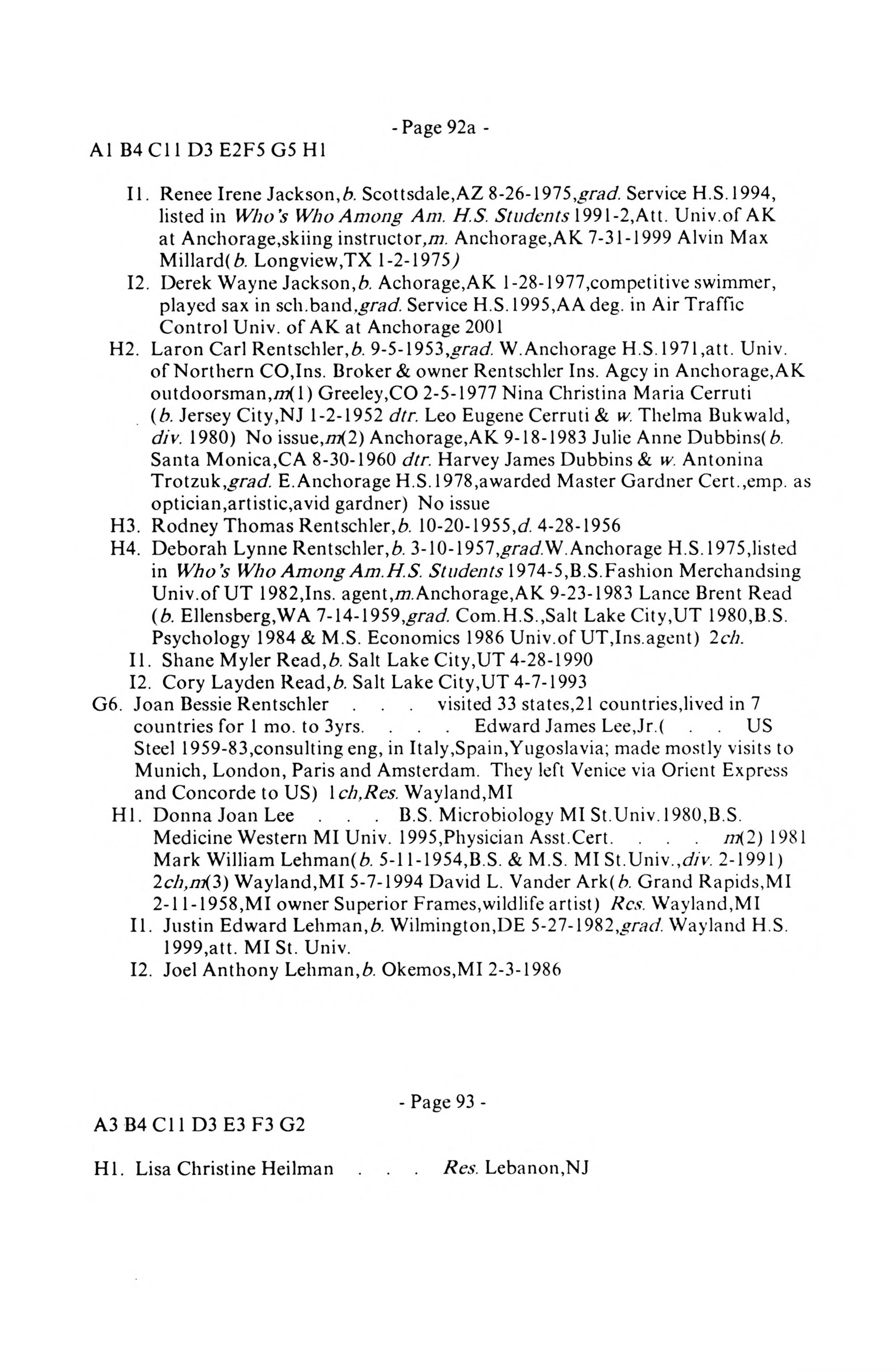 | Addendum to Backenstoss--Baggenstoss Family History - 2002 | Adde2002 | ||