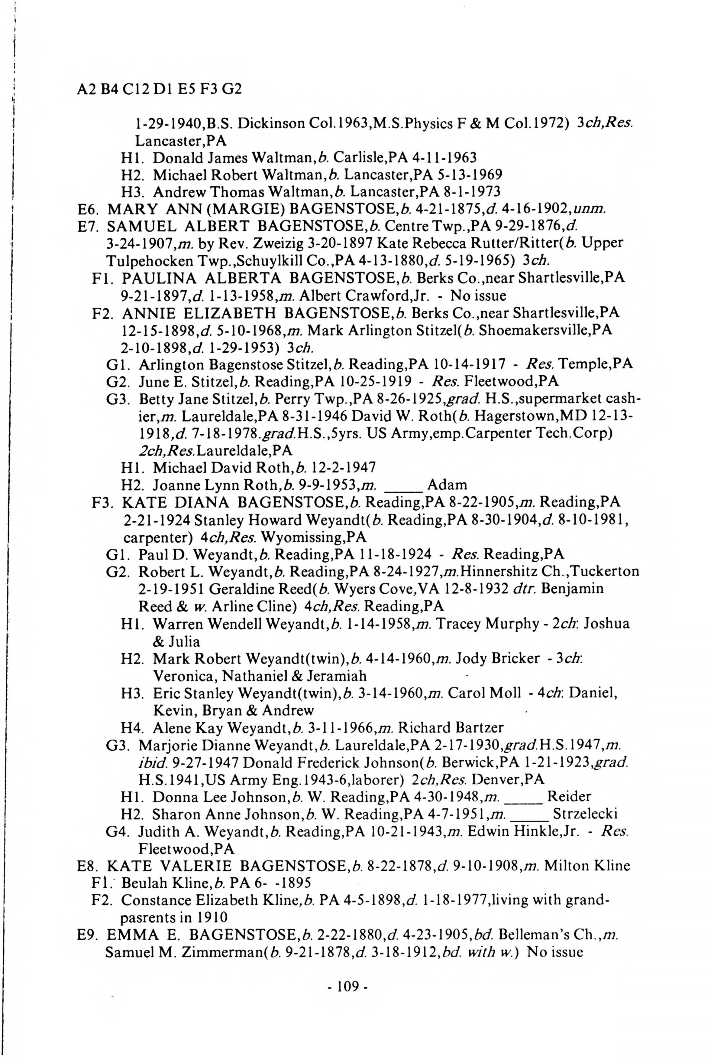 | Backenstoss--Baggenstoss Family History - 1993 - Main Book | Main1993 | ||