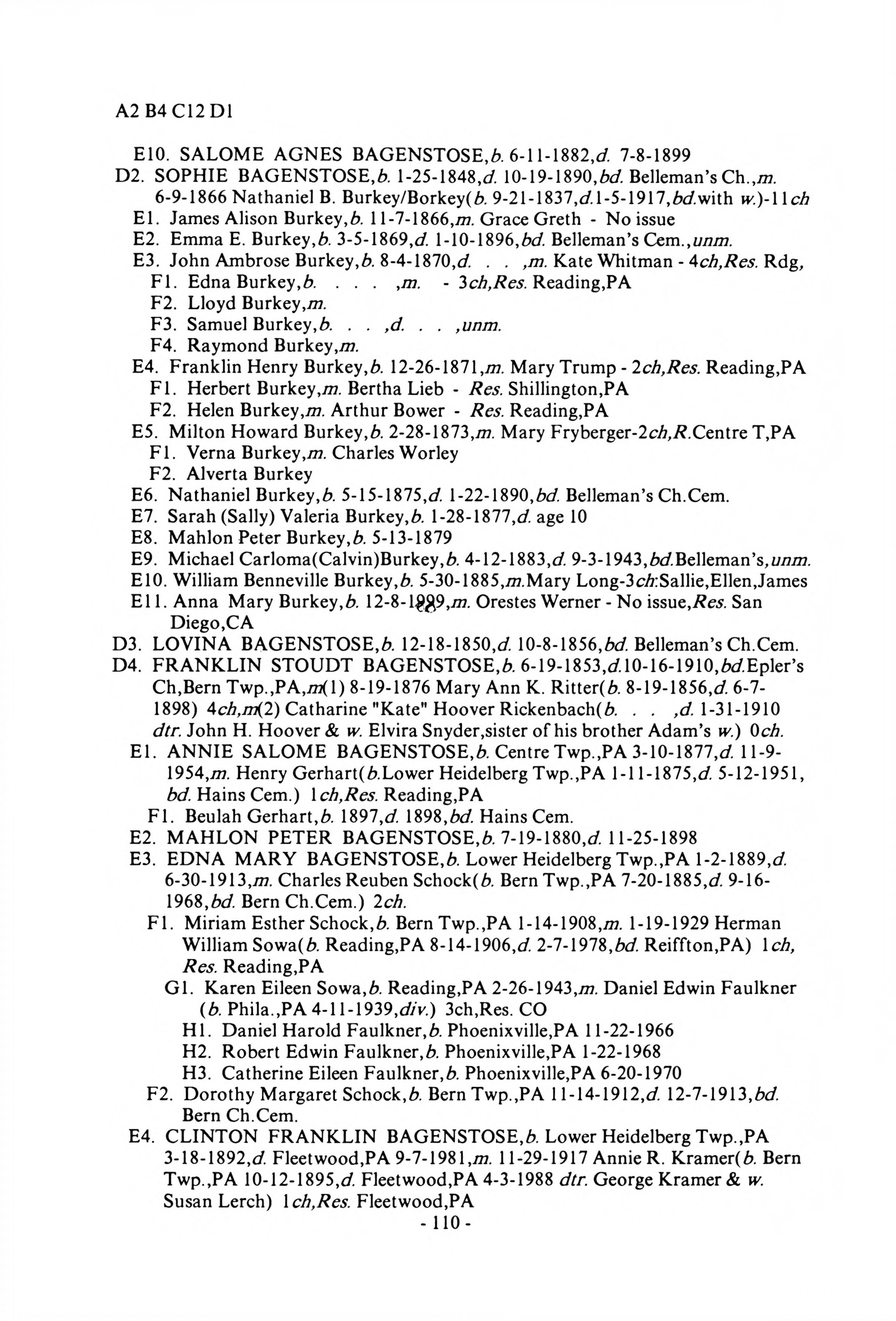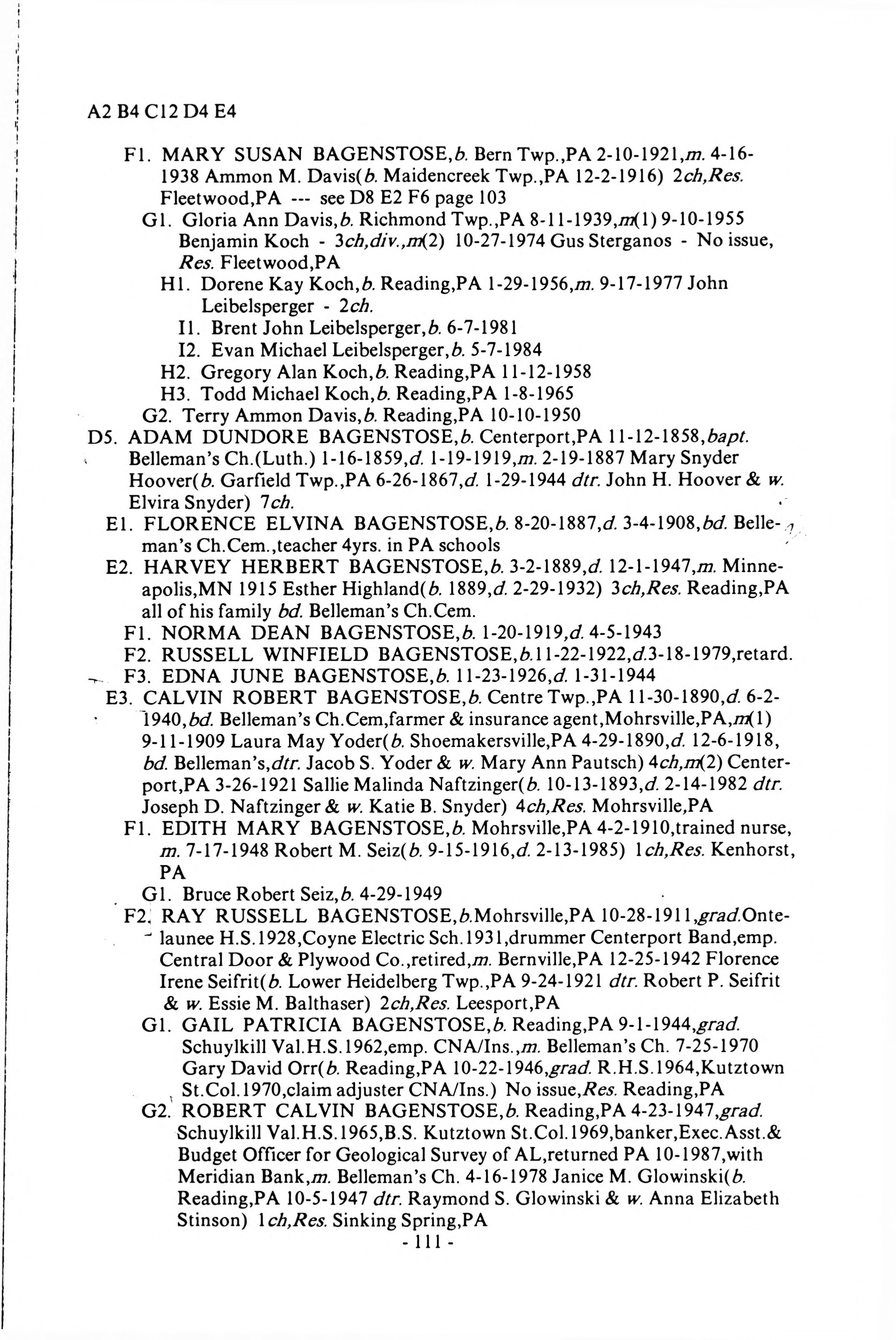 | Backenstoss--Baggenstoss Family History - 1993 - Main Book | Main1993 | ||