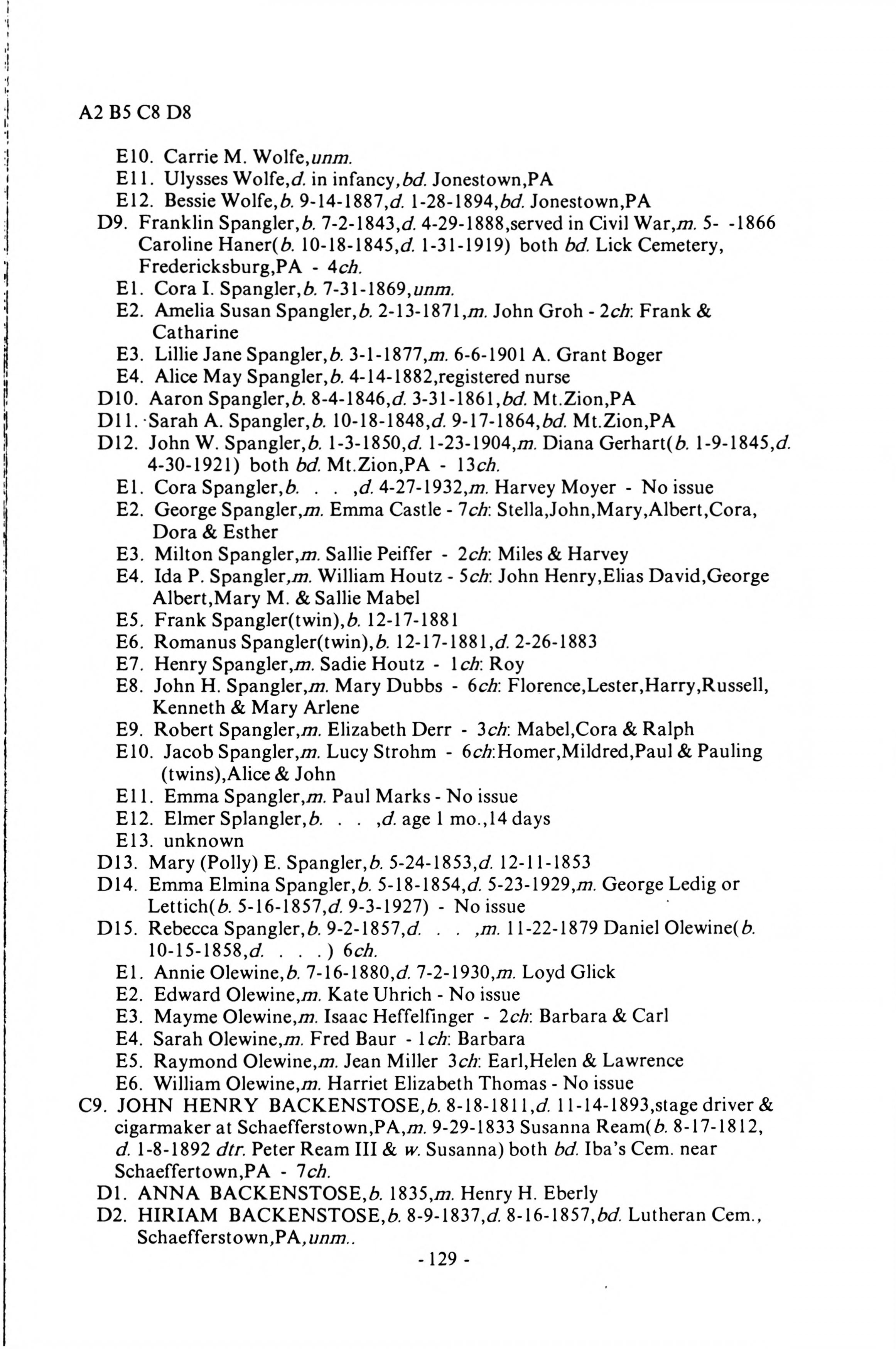 JOHN HENRY BACKENSTOSE, ...on 4-1-1859 John, his wife Susanna, and son Henry were living in Jackson Twp..Lebanon Co. where they signed a land indenture