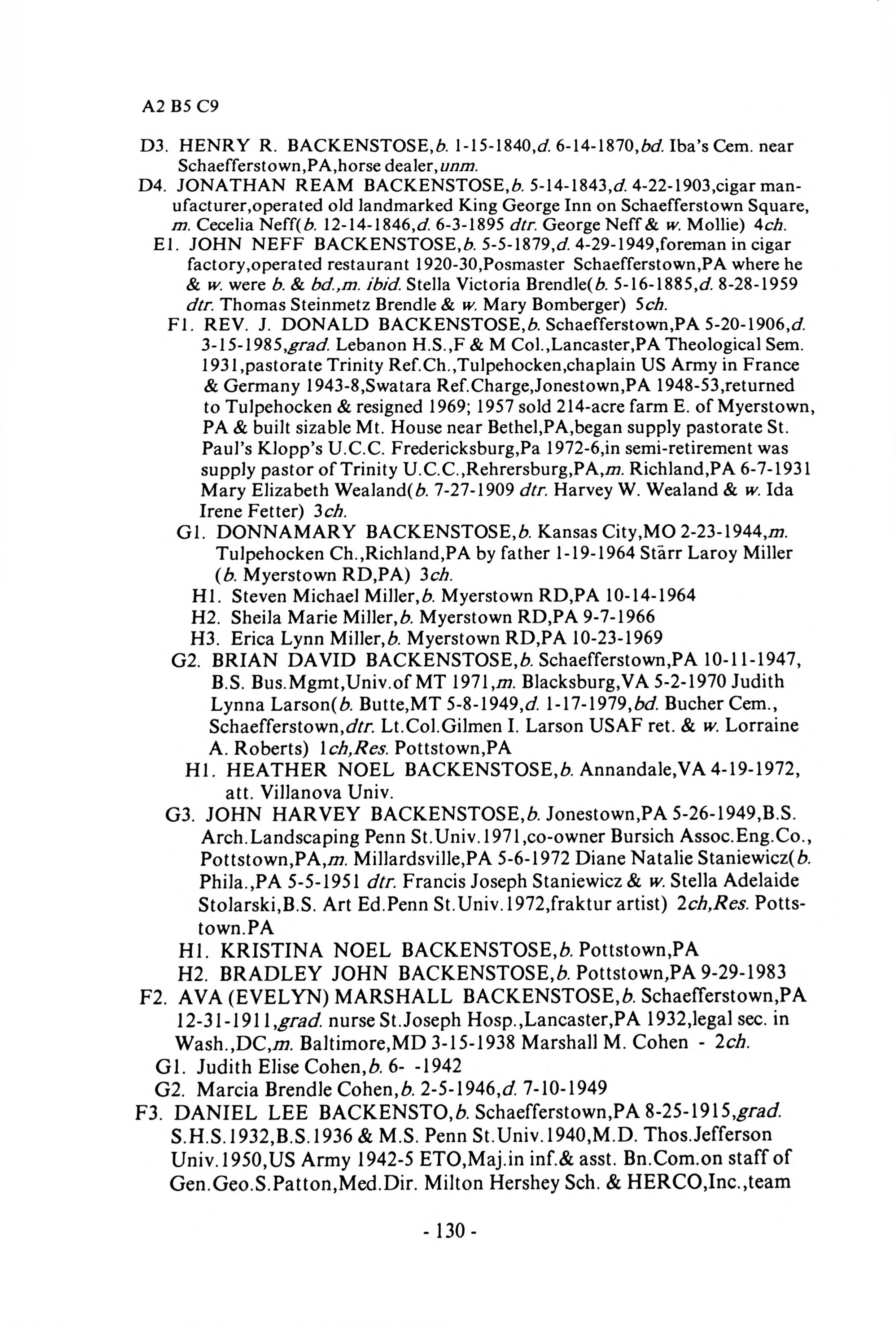 Backenstoss--Baggenstoss Family History - 1993 - Main Book