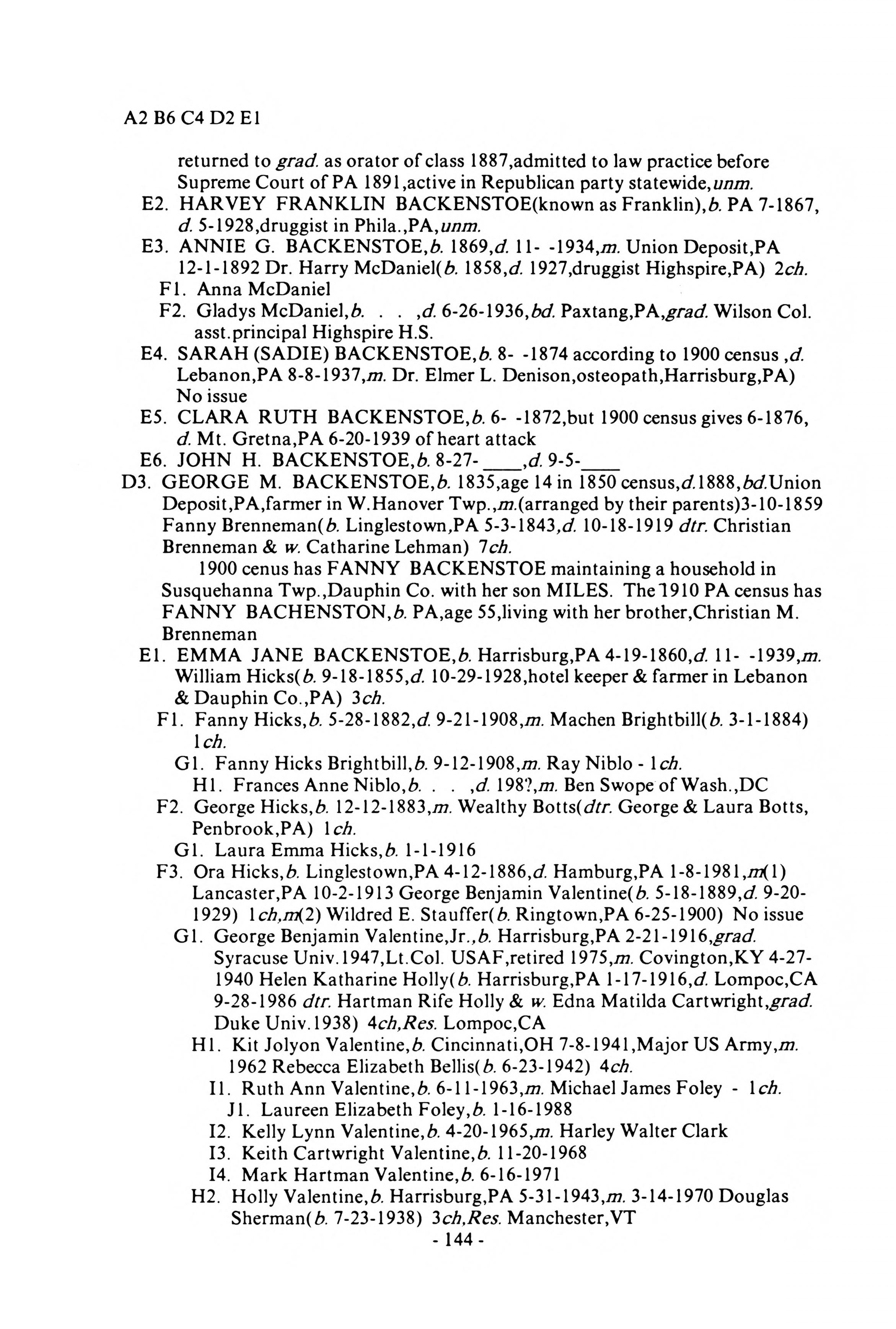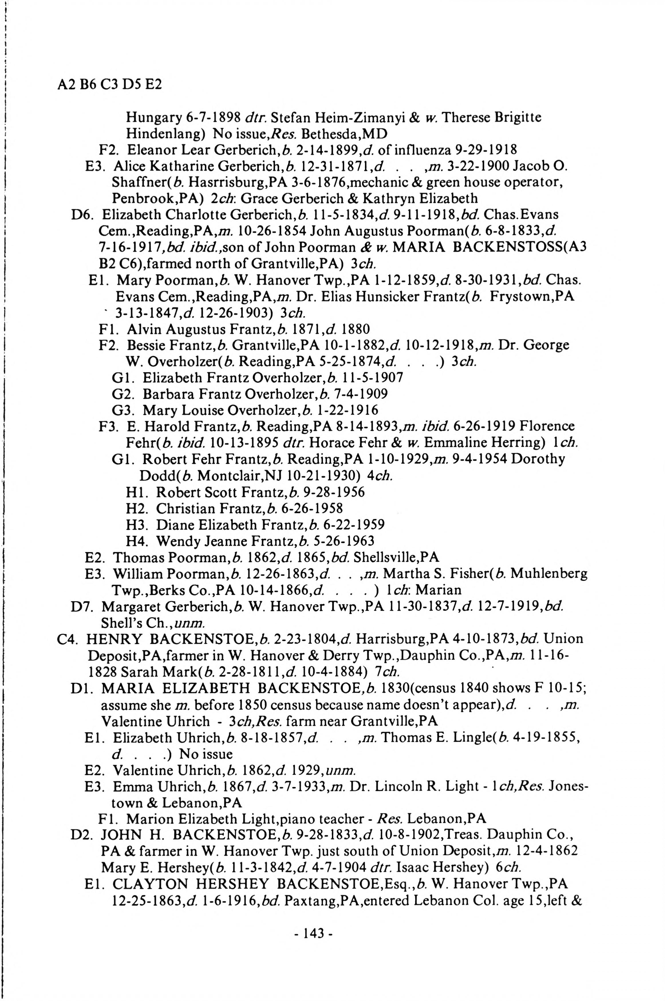 | Backenstoss--Baggenstoss Family History - 1993 - Main Book | Main1993 | ||