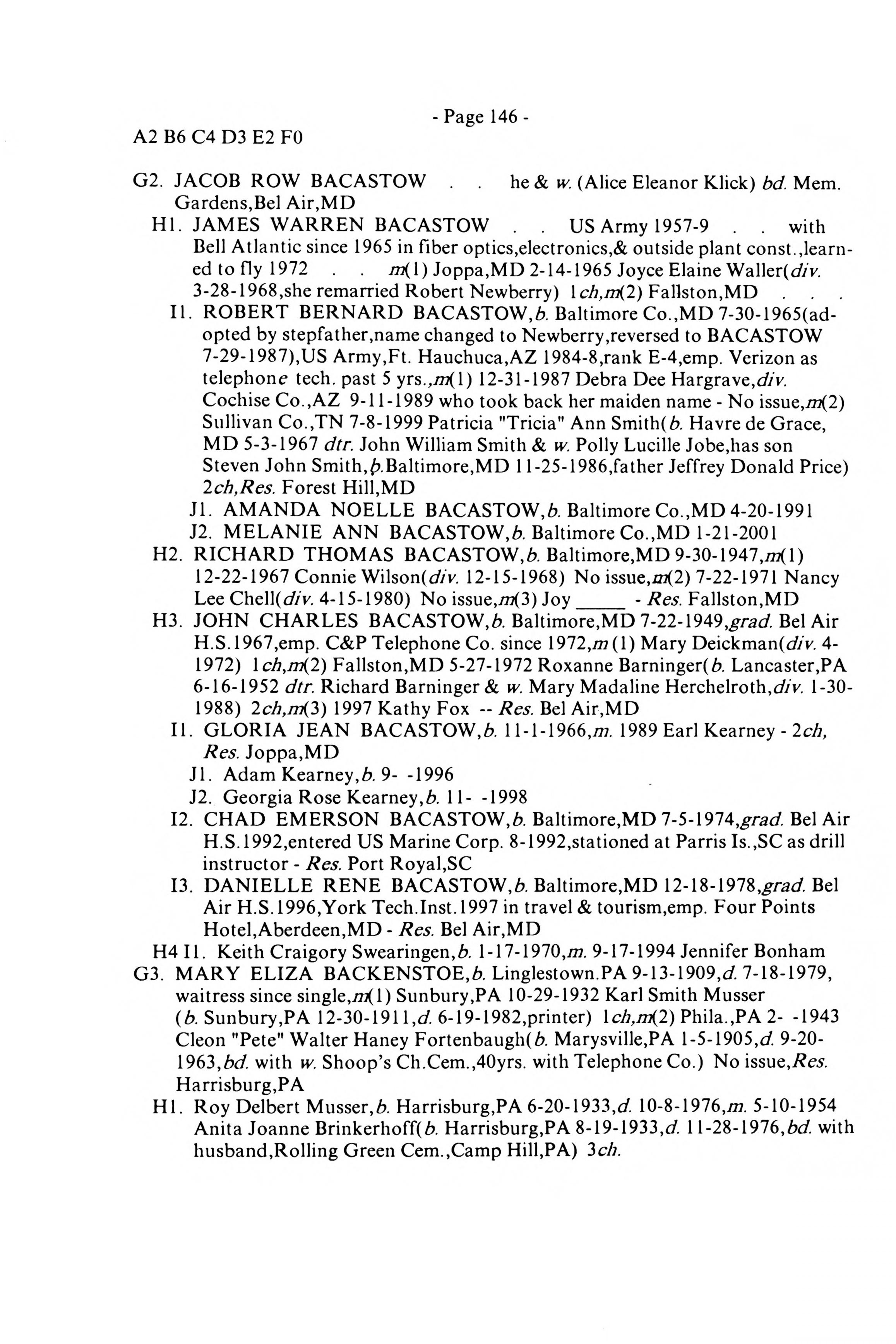 | Addendum to Backenstoss--Baggenstoss Family History - 2002 | Adde2002 | ||