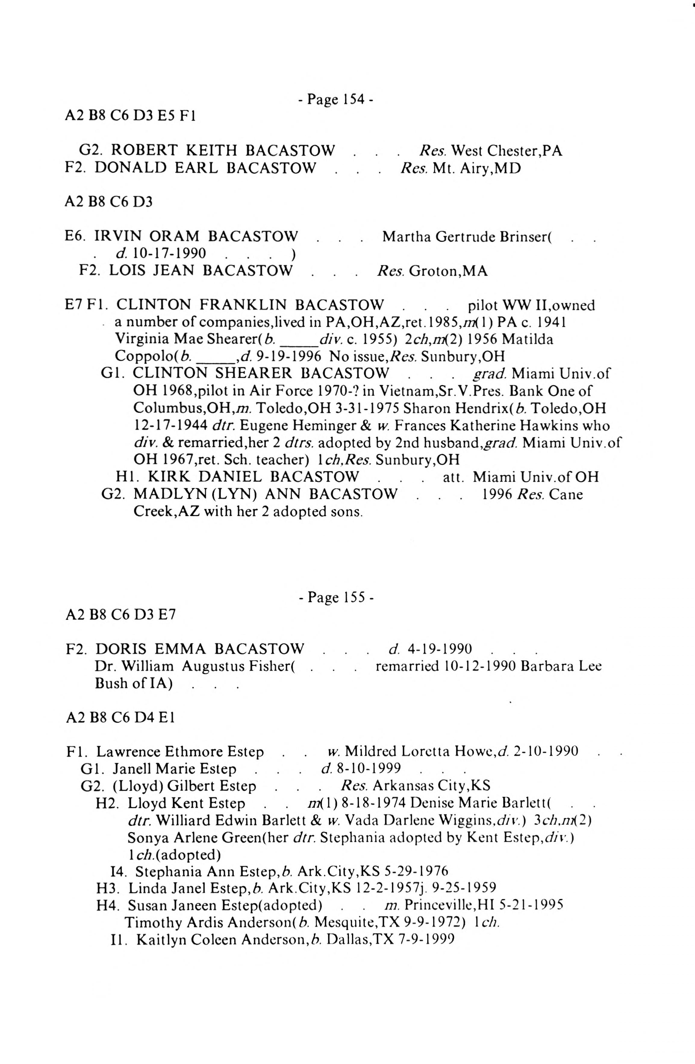 Addendum to Backenstoss--Baggenstoss Family History - 2002