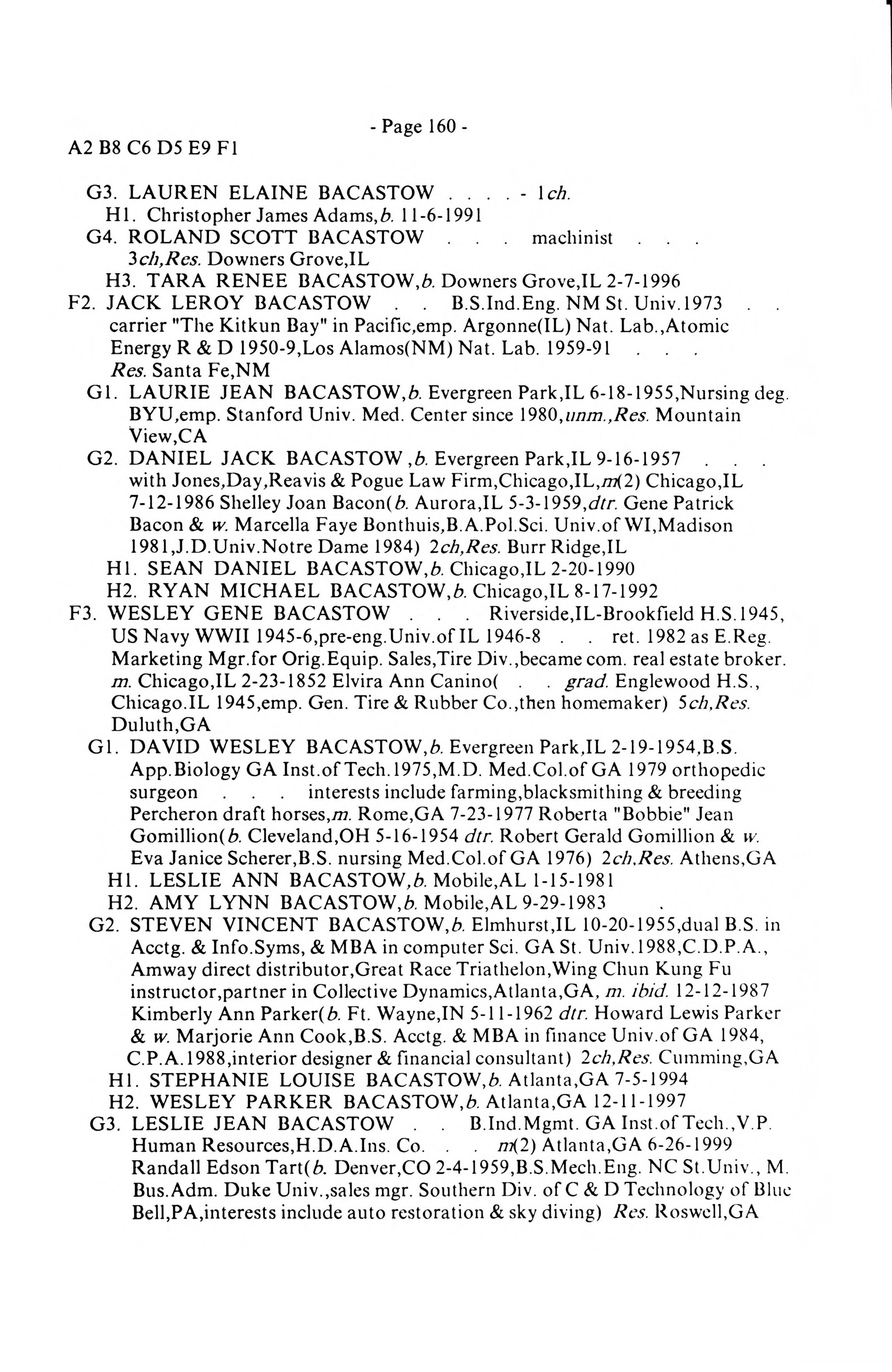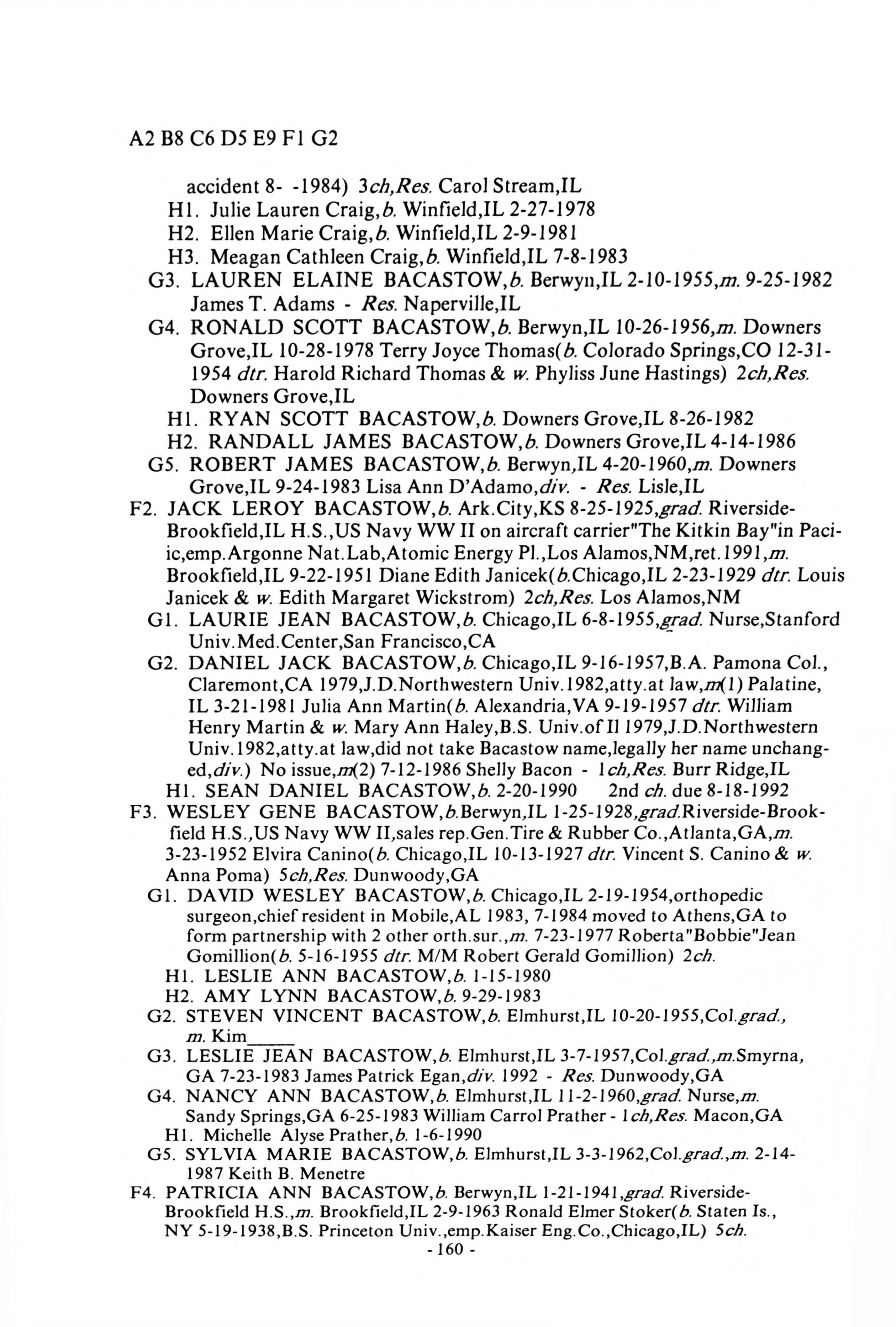 | WESLEY GENE BACASTOW | 01-25-1928 | Berwyn,IL | |