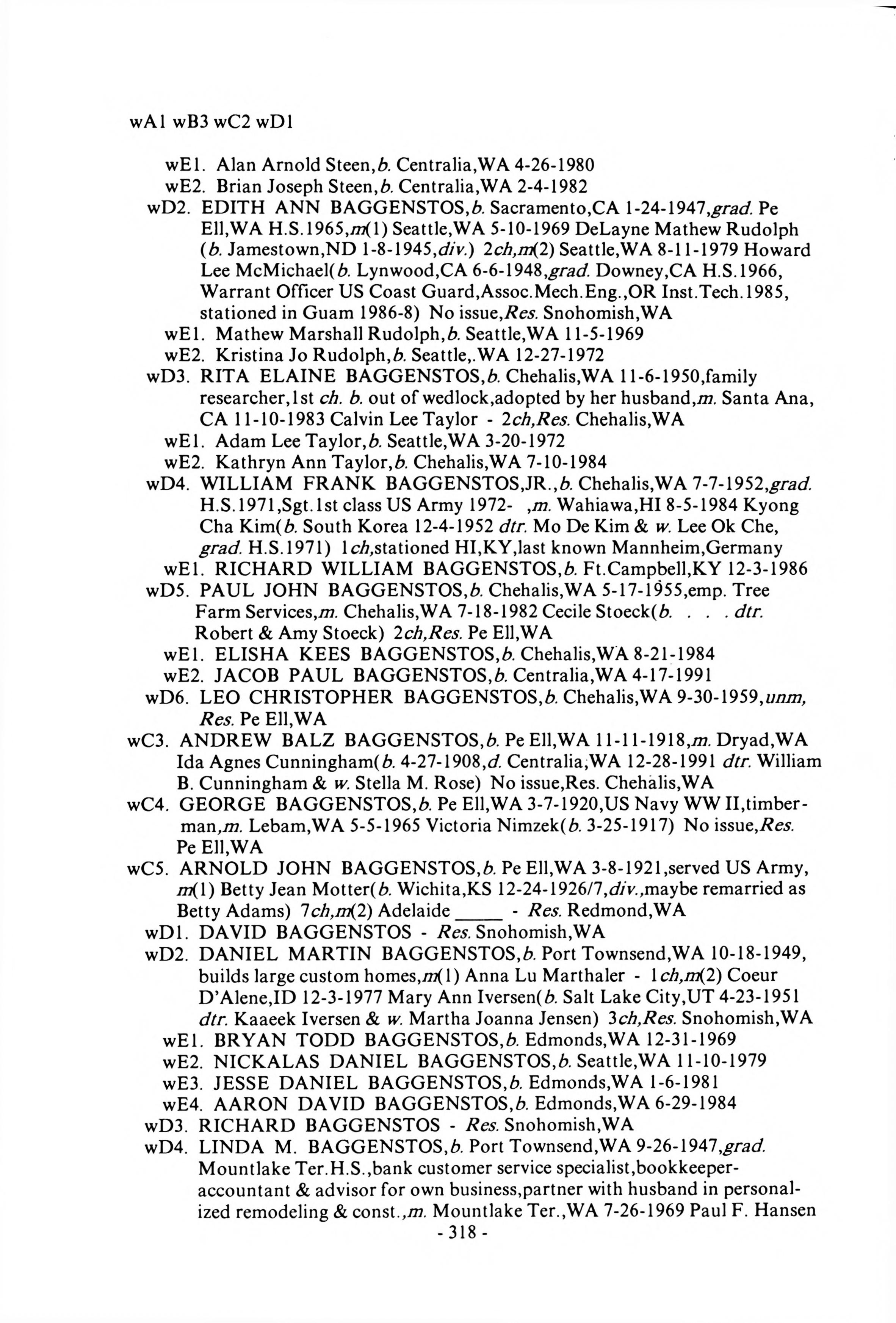 | WILLIAM FRANK BAGGENSTOS | 07-10-1917 | Pe Ell,WA,farmer | |