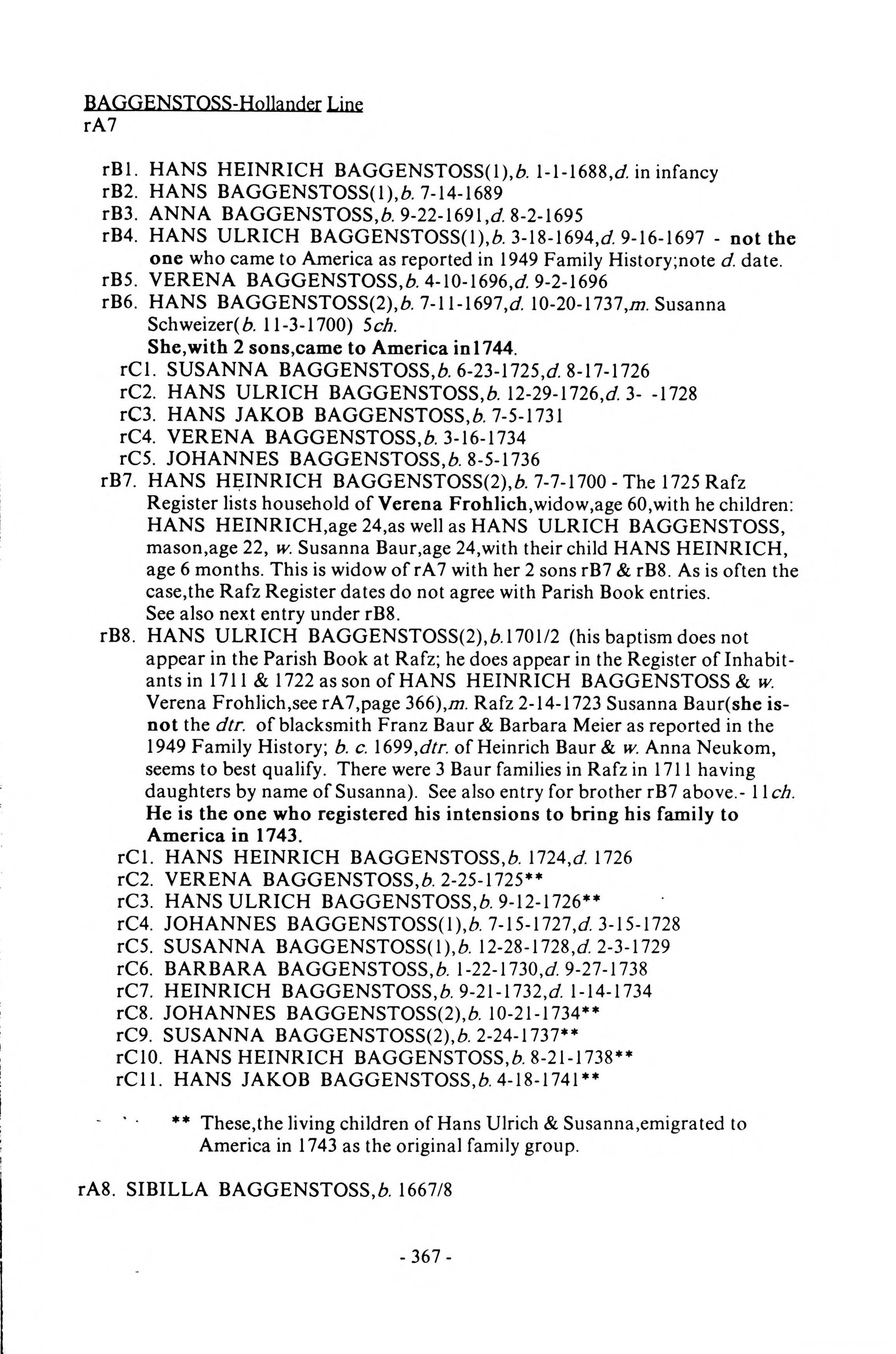 | HANS KONRAD (HEINRICH) BAGGENSTOSS | 11-15-1697 | 01-30-1752 | |
