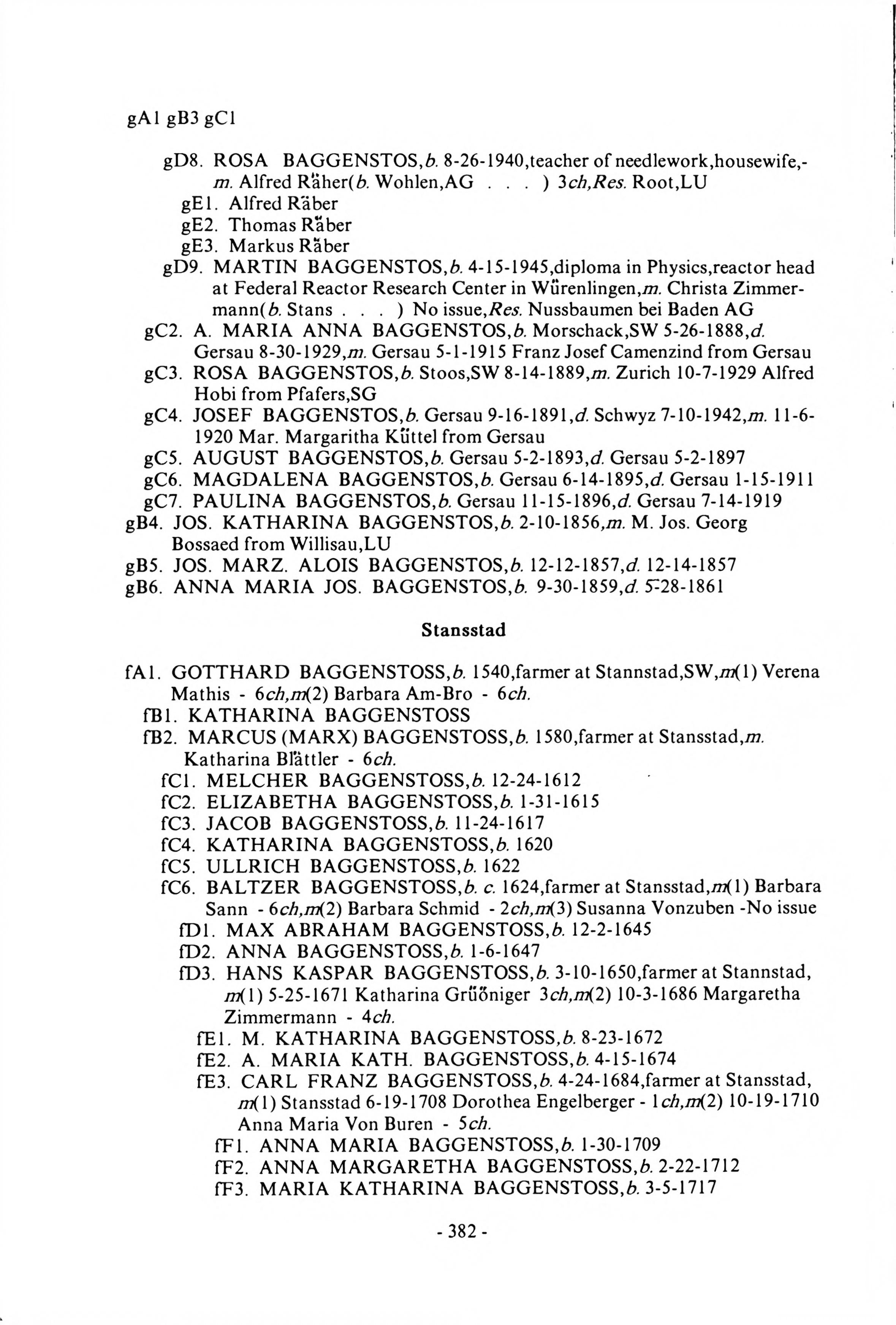 | Backenstoss--Baggenstoss Family History - 1993 - Main Book | Main1993 | ||