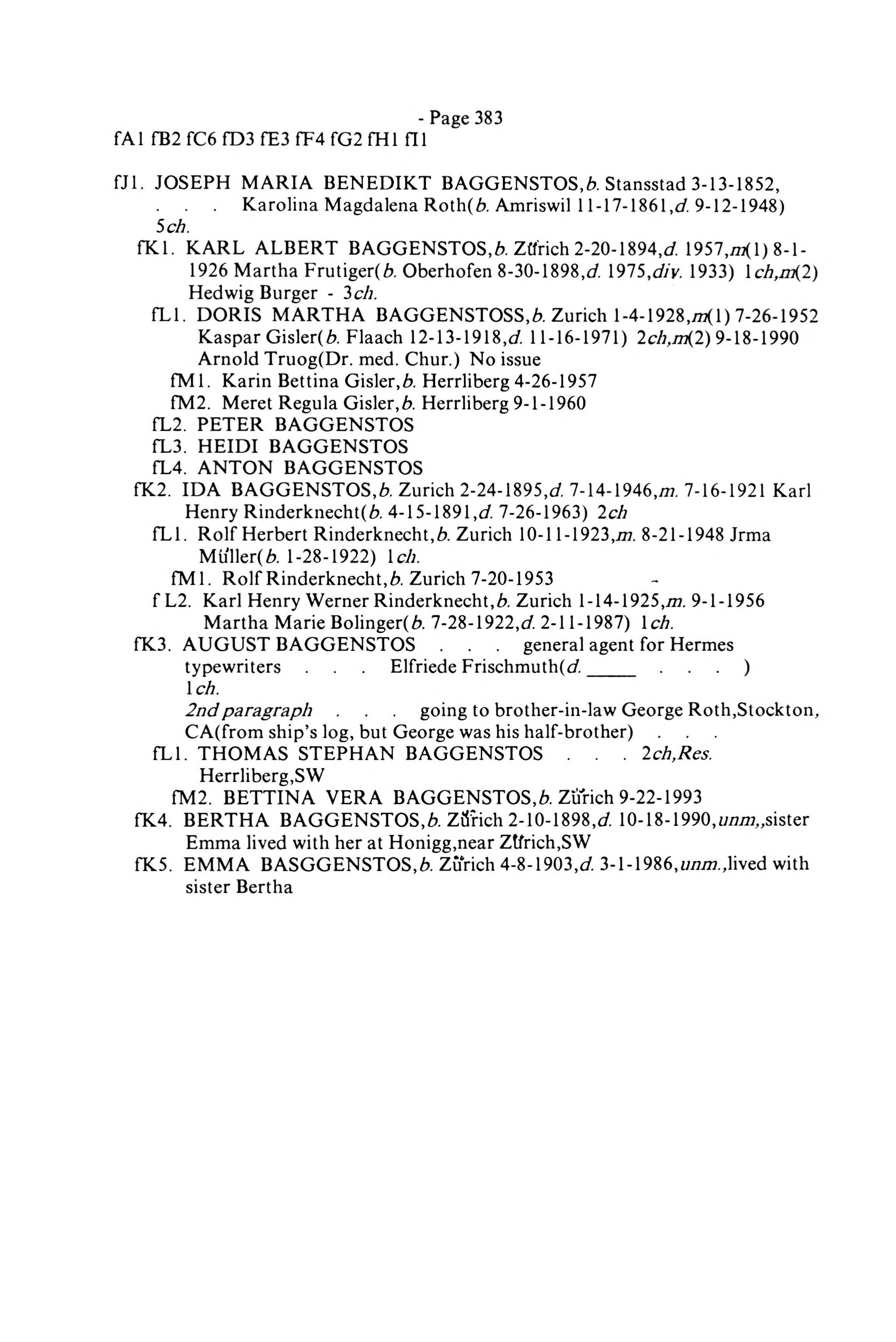 Backenstoss--Baggenstoss Family History - 1993 - Main Book - Page 383