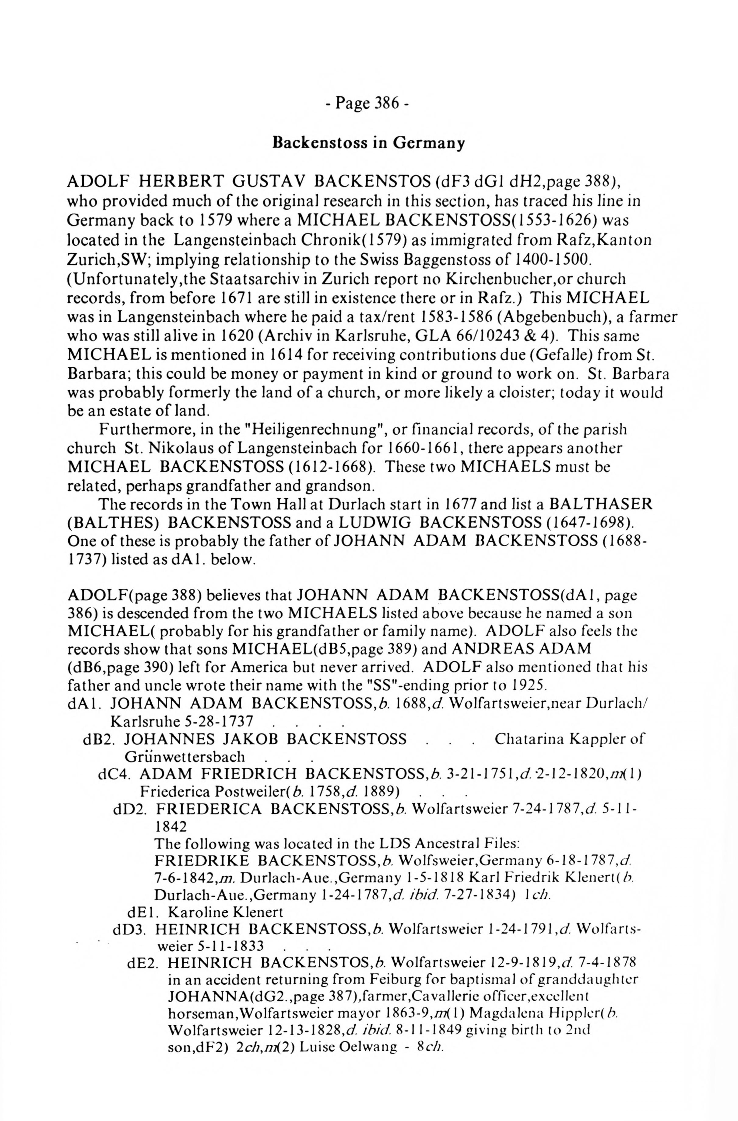 Addendum to Backenstoss--Baggenstoss Family History - 2002 - Page 383