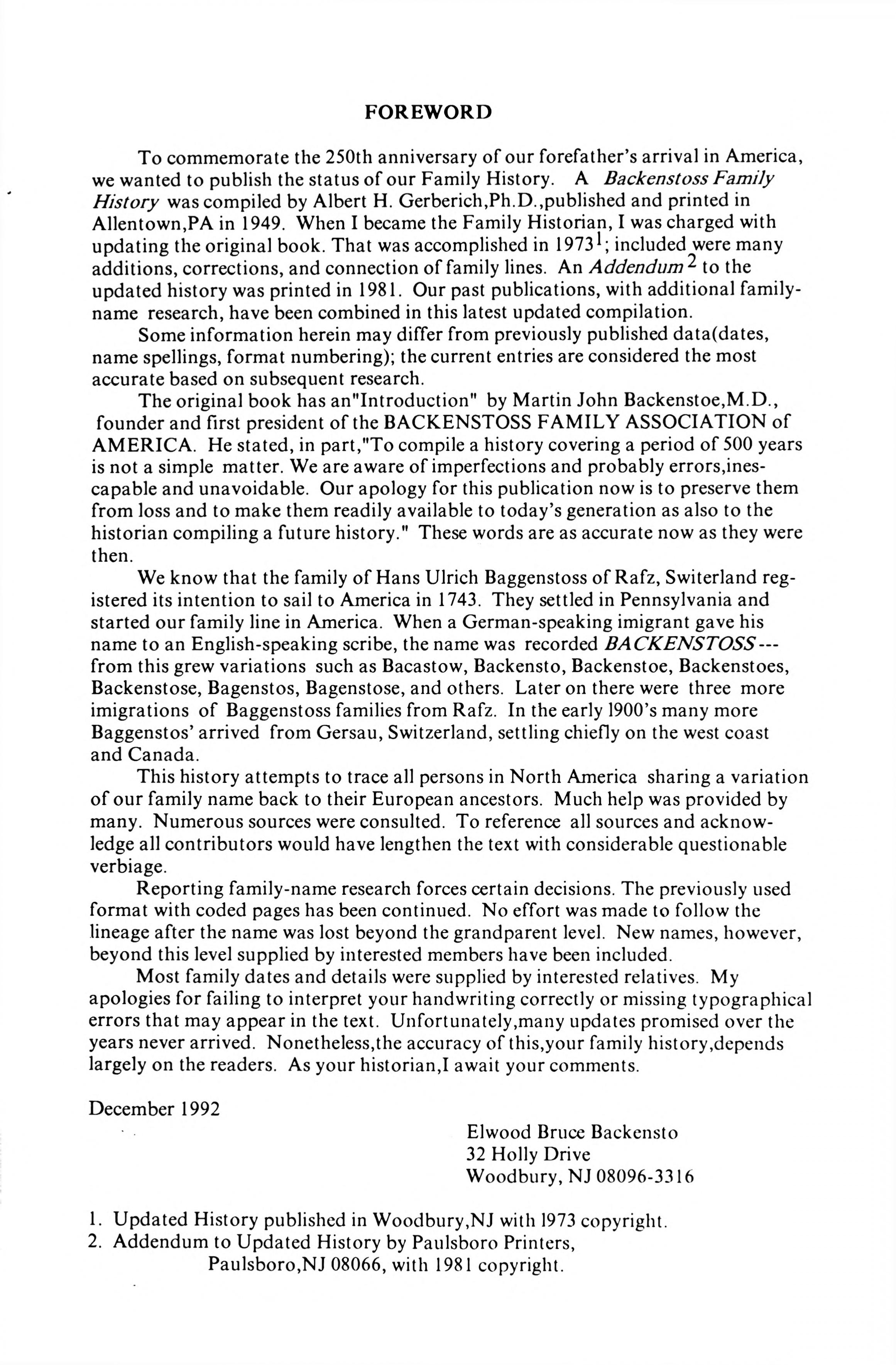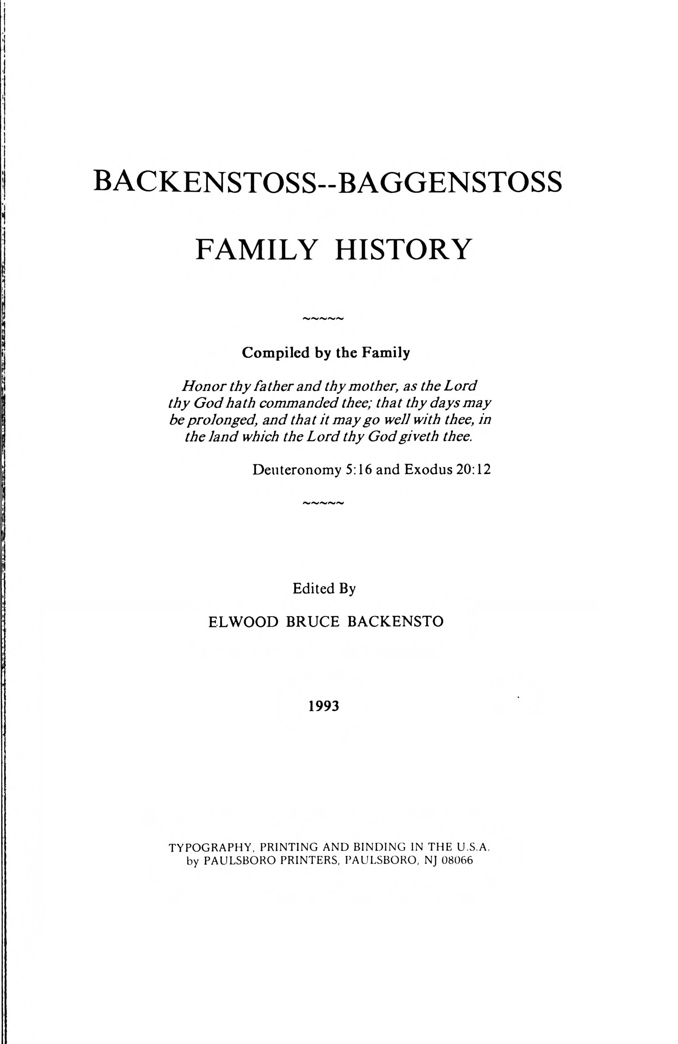 Bagenstose Family History